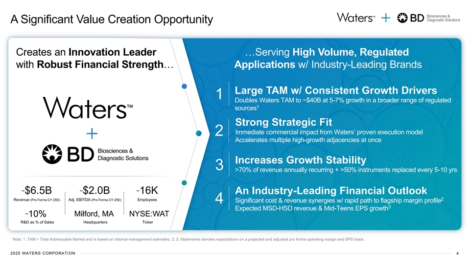 Biosciences & Diagnostic Solutions Today’s Speakers Dr. Udit Batra Tom Polen Amol Chaubal Christopher DelOrefice Waters President BD Chairman, Waters SVP, BD EVP, & Chief Executive Officer CEO & President Chief Financial Officer Chief Financial Officer 2025 WATERS CORPORATION 2