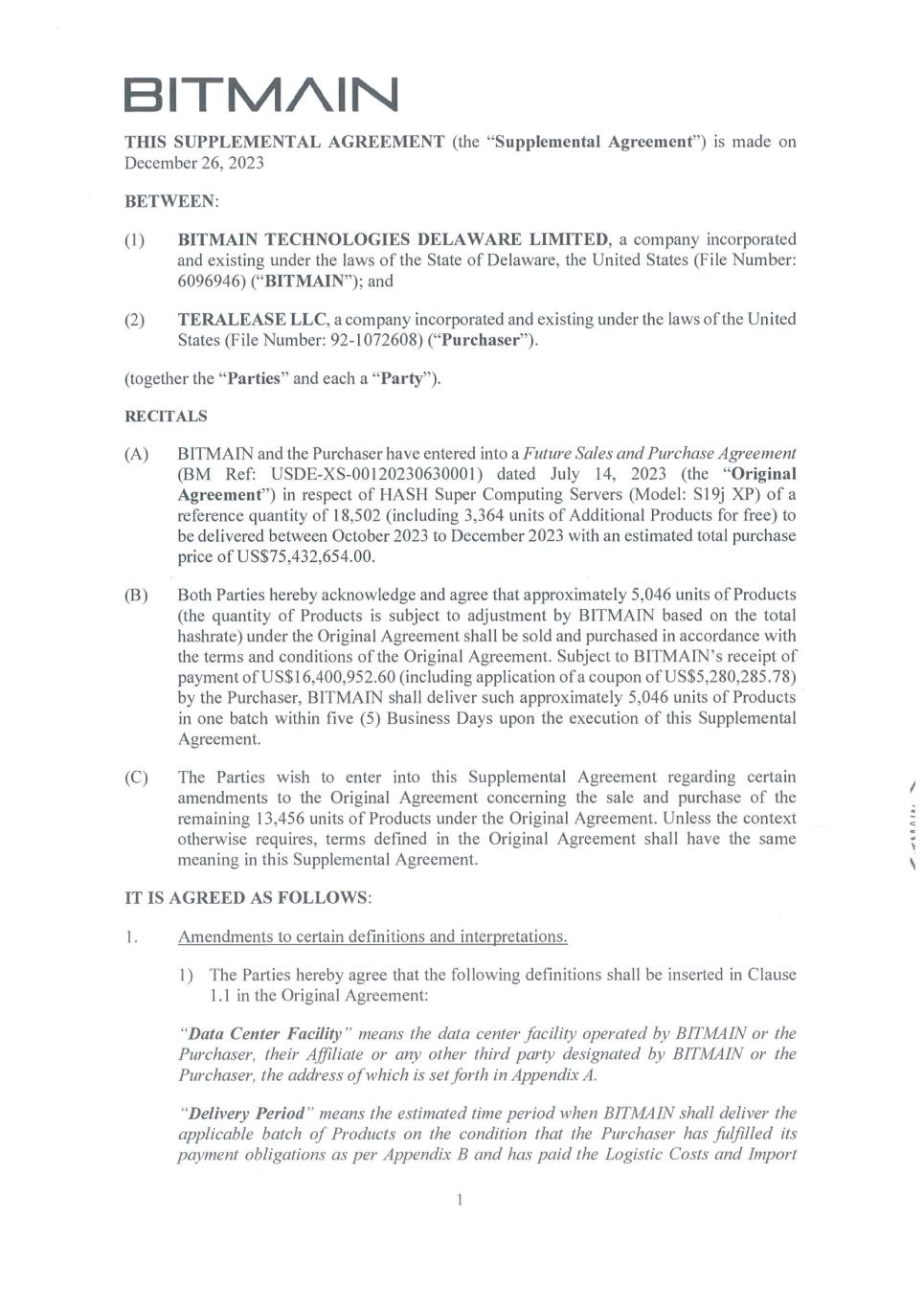 EX-10.1 2 supplementalagreementbit.htm EX-10.1 supplementalagreementbit
