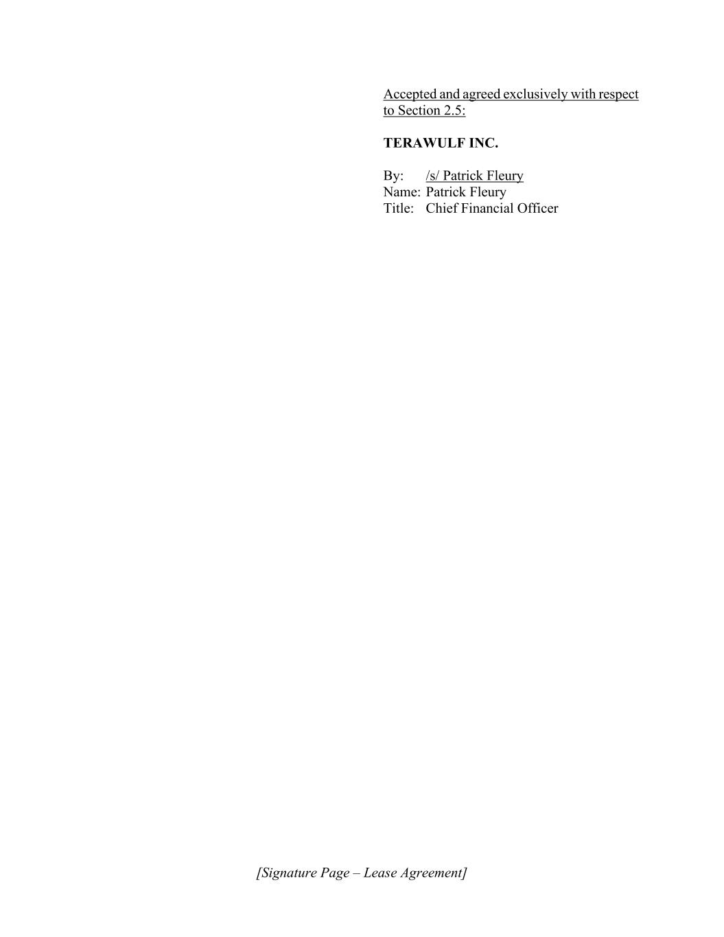[Signature Page – Lease Agreement] Accepted and agreed exclusively with respect to Section 2.5: TERAWULF INC. By: /s/ Patrick Fleury Name: Patrick Fleury Title: Chief Financial Officer