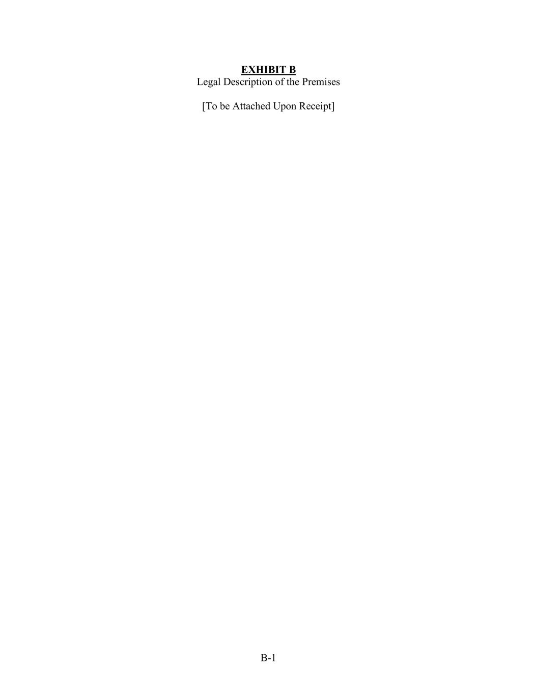 B-1 EXHIBIT B Legal Description of the Premises [To be Attached Upon Receipt]