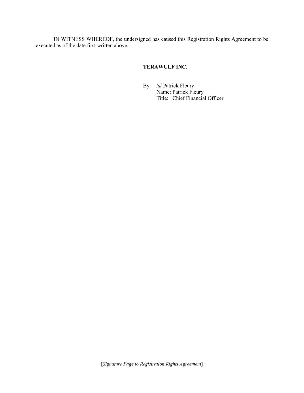 [Signature Page to Registration Rights Agreement] IN WITNESS WHEREOF, the undersigned has caused this Registration Rights Agreement to be executed as of the date first written above. TERAWULF INC. By: /s/ Patrick Fleury Name: Patrick Fleury Title: Chief Financial Officer