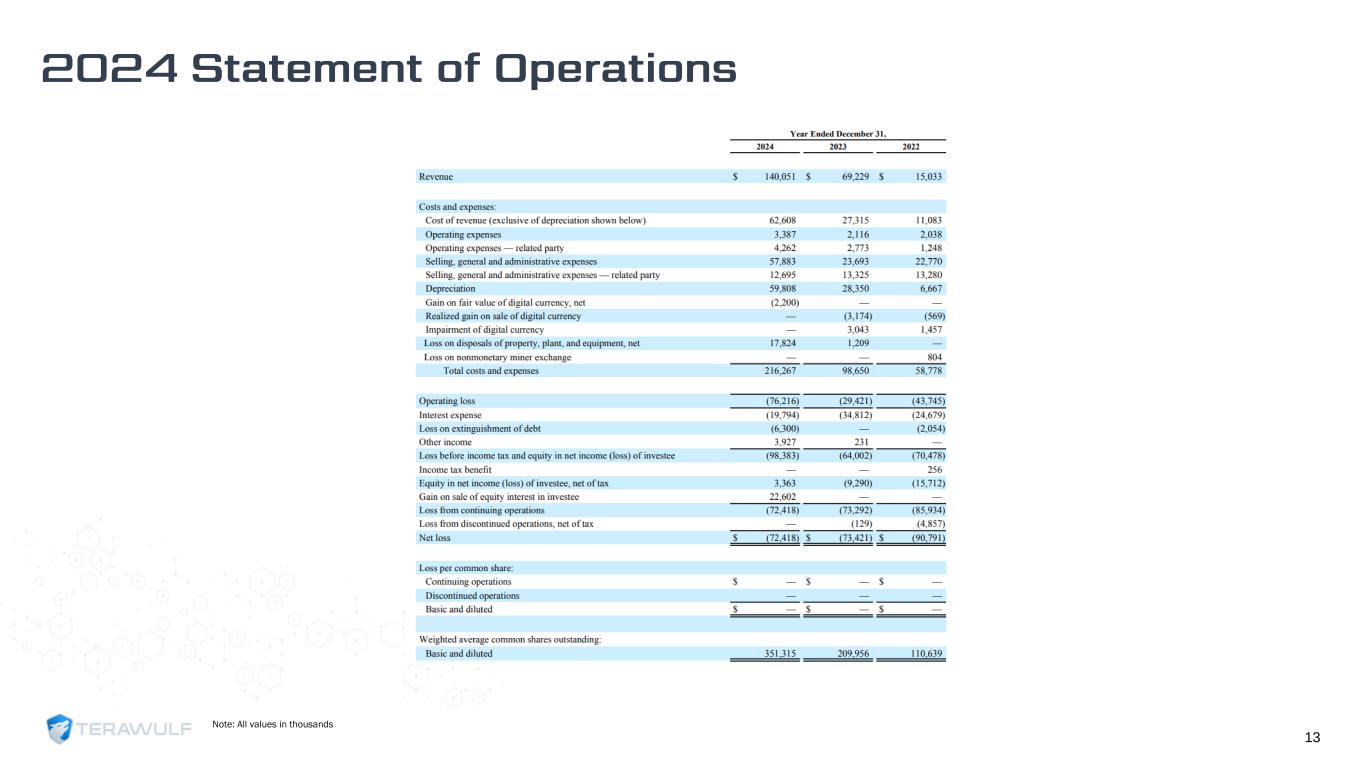 13 Note: All values in thousands