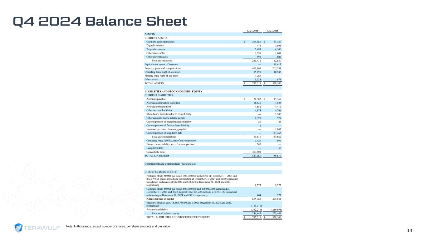 14 Note: In thousands, except number of shares, per share amounts and par value