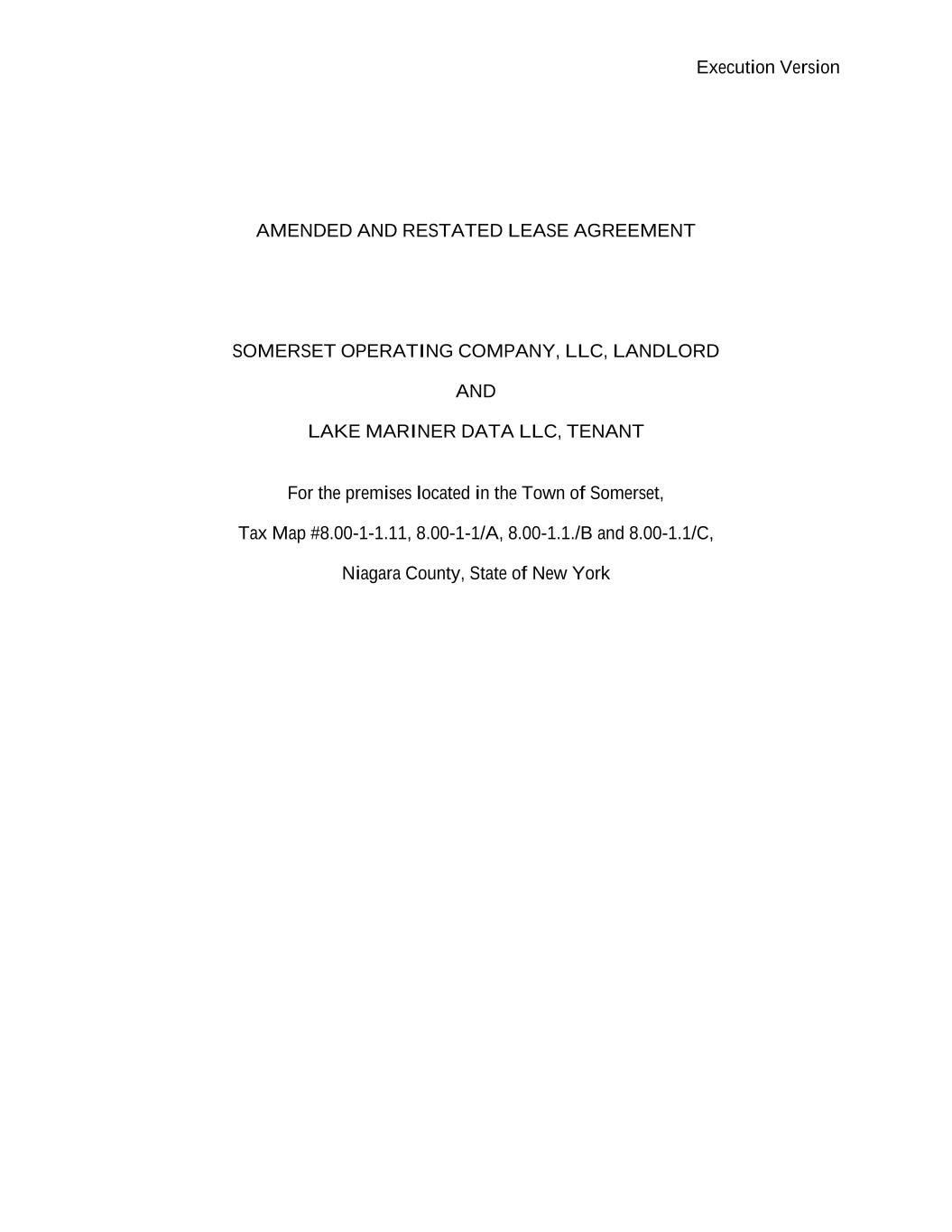 Execution Version AMENDED AND RESTATED LEASE AGREEMENT SOMERSET OPERATING COMPANY, LLC, LANDLORD AND LAKE MARINER DATA LLC, TENANT For the premises located in the Town of Somerset, Tax Map #8.00-1-1.11, 8.00-1-1/A, 8.00-1.1./B and 8.00-1.1/C, Niagara County, State of New York