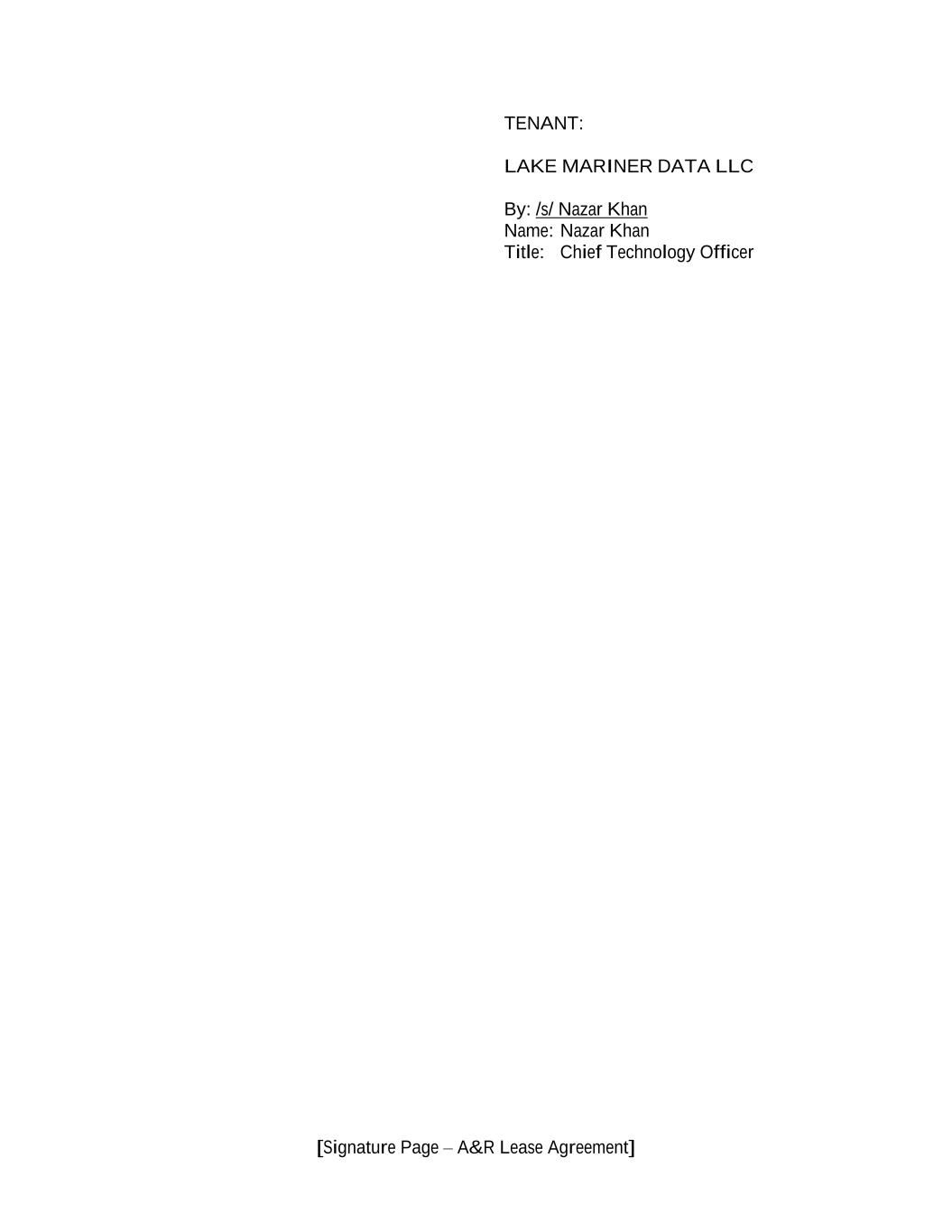 [Signature Page – A&R Lease Agreement] TENANT: LAKE MARINER DATA LLC By: /s/ Nazar Khan Name: Nazar Khan Title: Chief Technology Officer