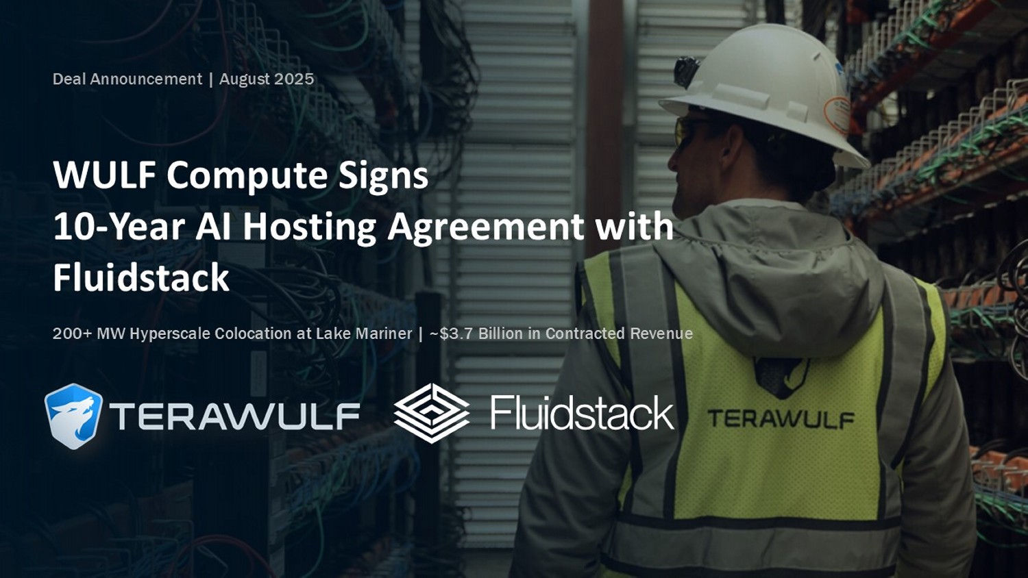 WULF Compute Signs 1 0 - Year AI Hosting Agreement with Fluidstack 20 0+ MW Hyperscale Colocation at Lake Mariner | ~$ 3.7 Billion in Contracted Revenue Deal Announcement | August 2025