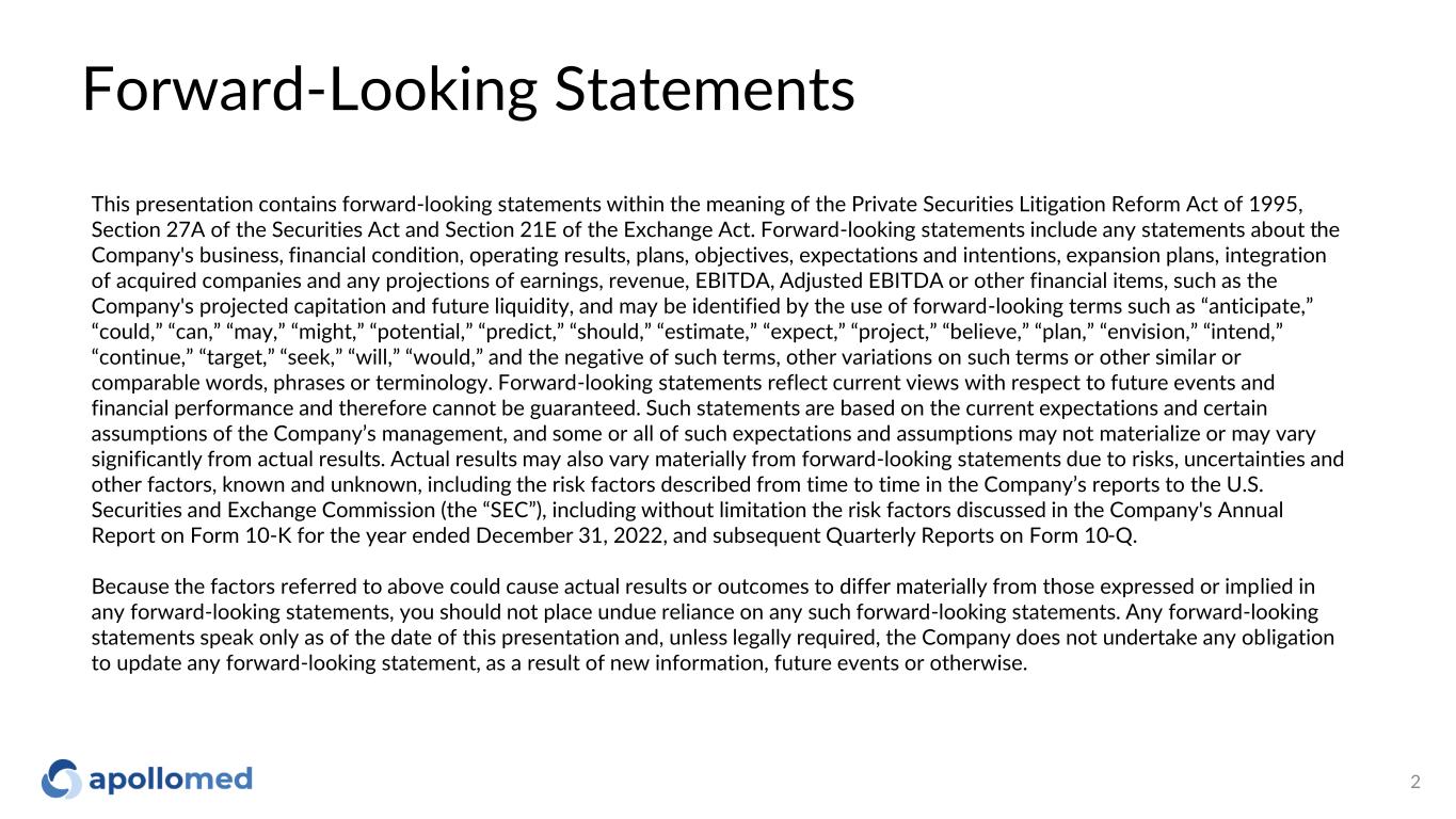 1 Powered by Technology. Built by Doctors. For Patients. Apollo Medical Holdings (NASDAQ: AMEH) First Quarter 2023 Earnings Call Supplement May 8, 2023