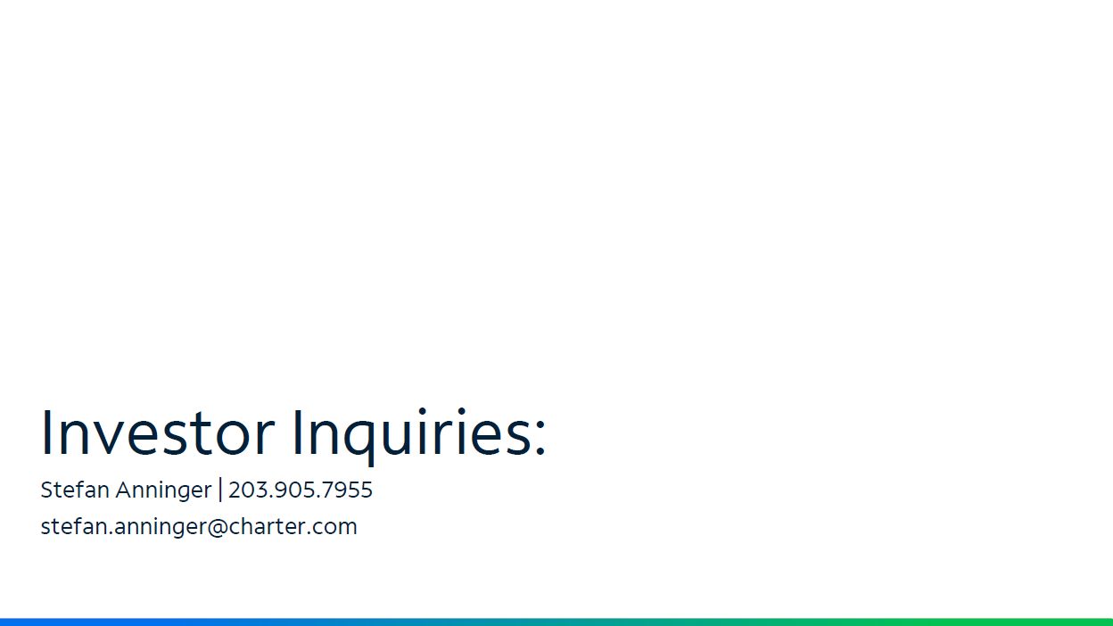 Investor Inquiries:  Stefan Anninger | 203.905.7955  stefan.anninger@charter.com