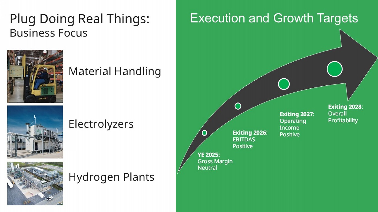 3 Material Handling Electrolyzers Hydrogen Plants Exiting 2026 : EBITDAS Positive Exiting 2027 : Operating Income Positive Exiting 2028 : Overall Profitability Plug Doing Real Things: Business Focus YE 2025: Gross Margin Neutral Execution and Growth Targets