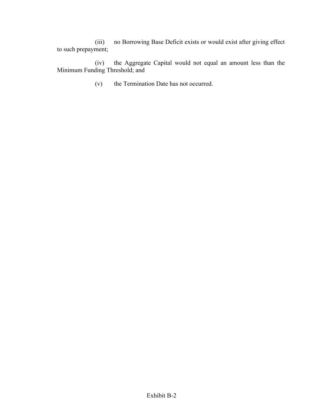 Exhibit B-2 (iii) no Borrowing Base Deficit exists or would exist after giving effect to such prepayment; (iv) the Aggregate Capital would not equal an amount less than the Minimum Funding Threshold; and (v) the Termination Date has not occurred.