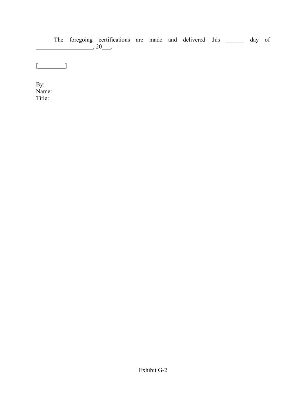 Exhibit G-2 The foregoing certifications are made and delivered this ______ day of ___________________, 20___. [_________] By: Name: Title: