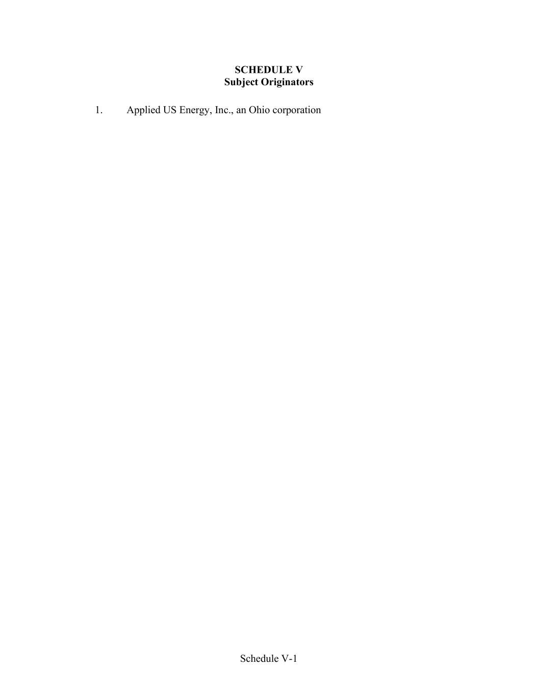 Schedule V-1 SCHEDULE V Subject Originators 1. Applied US Energy, Inc., an Ohio corporation
