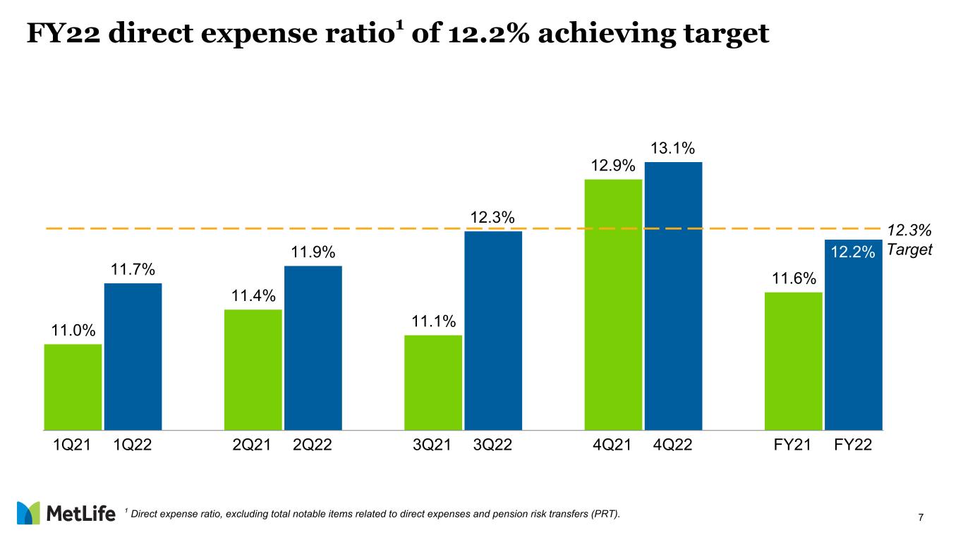 7 11.0% 11.7% 11.4% 11.9% 11.1% 12.3% 12.9% 13.1% 11.6% 12.2% 1Q21 1Q22 2Q21 2Q22 3Q21 3Q22 4Q21 4Q22 FY21 FY22 1 Direct expense ratio, excluding total notable items related to direct expenses and pension risk transfers (PRT). 12.3% Target FY22 direct expense ratio1 of 12.2% achieving target