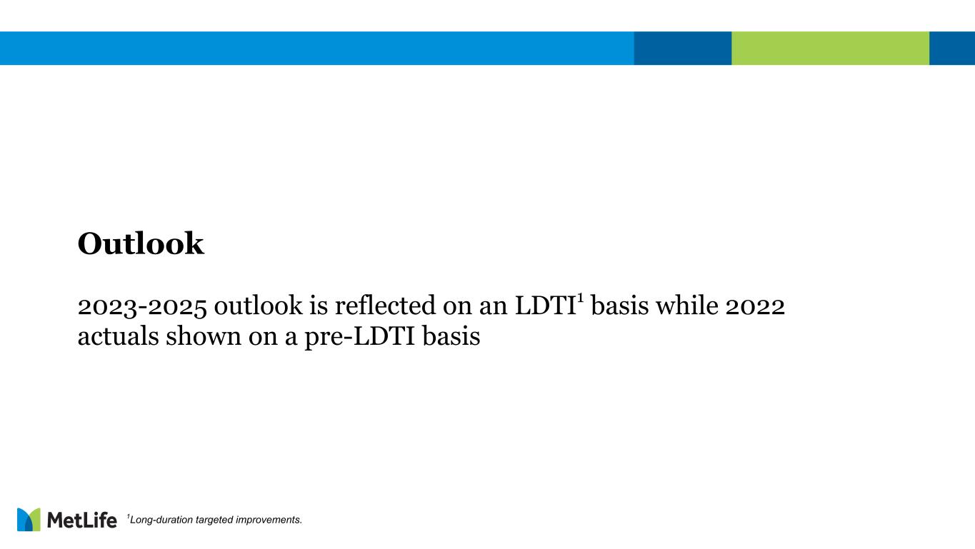 Outlook 2023-2025 outlook is reflected on an LDTI1 basis while 2022 actuals shown on a pre-LDTI basis 1Long-duration targeted improvements.