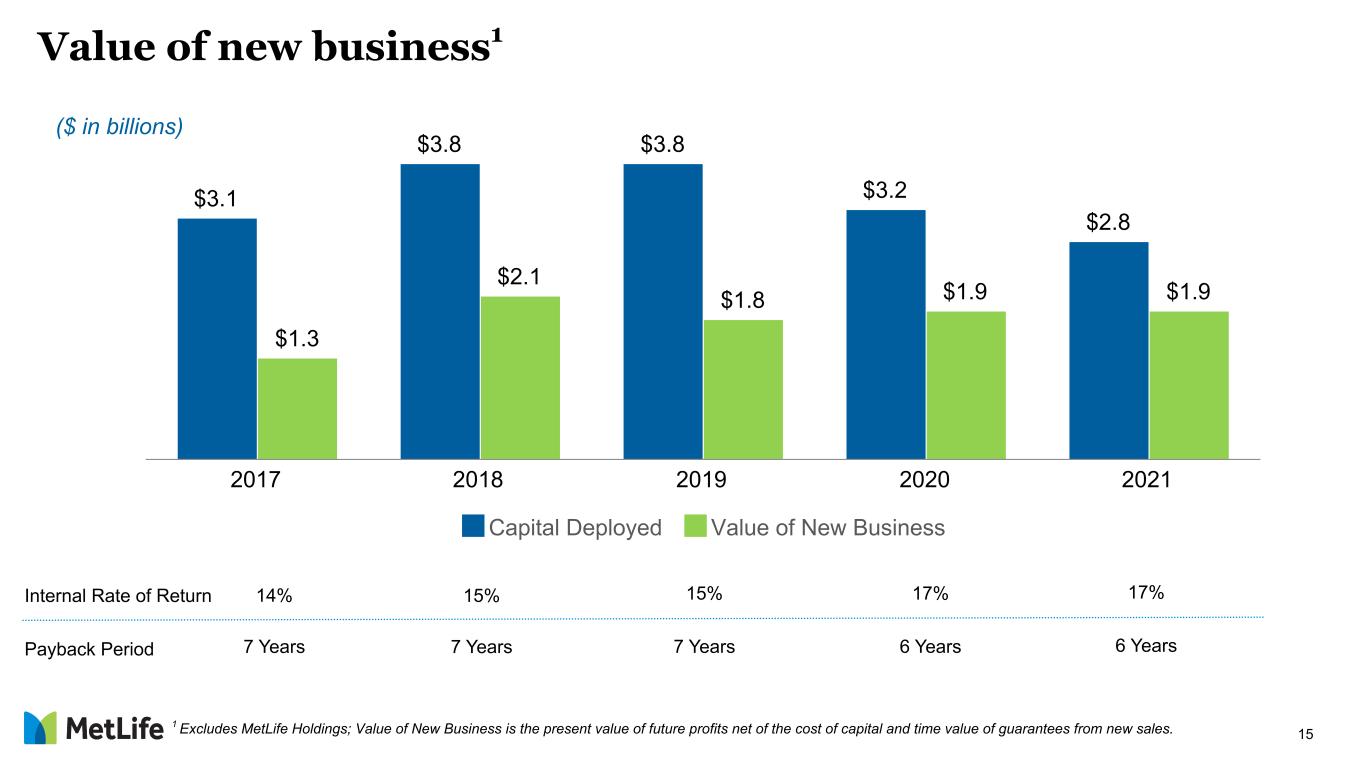 15 Value of new business1 $3.1 $3.8 $3.8 $3.2 $2.8 $1.3 $2.1 $1.8 $1.9 $1.9 Capital Deployed Value of New Business 2017 2018 2019 2020 2021 ($ in billions) Internal Rate of Return Payback Period 15% 7 Years 15% 7 Years 17% 6 Years 14% 7 Years 1 Excludes MetLife Holdings; Value of New Business is the present value of future profits net of the cost of capital and time value of guarantees from new sales. 17% 6 Years