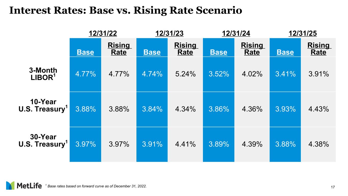 16 12/31/22 12/31/23 12/31/24 12/31/25 Base Declining Rate Base Declining Rate Base Declining Rate Base Declining Rate 3-Month LIBOR1 4.77% 4.77% 4.74% 4.24% 3.52% 3.02% 3.41% 2.91% 10-Year U.S. Treasury1 3.88% 3.88% 3.84% 3.34% 3.86% 3.36% 3.93% 3.43% 30-Year U.S. Treasury1 3.97% 3.97% 3.91% 3.41% 3.89% 3.39% 3.88% 3.38% Interest Rates: Base vs. Declining Rate Scenario 1 Base rates based on forward curve as of December 31, 2022.