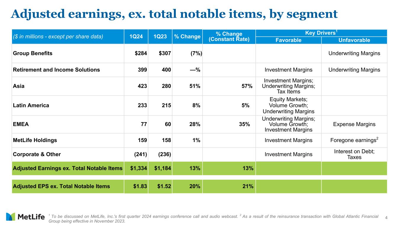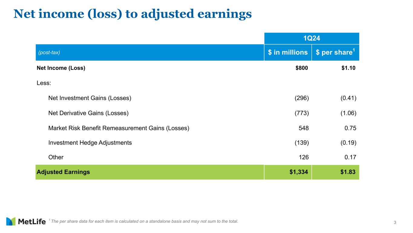 1Q24 Supplemental Slides1 John McCallion Chief Financial Officer and Head of MetLife Investment Management Exhibit 99.4 1 These slides highlight information in MetLife, Inc.'s earnings release, quarterly financial supplement and other prior public disclosures.