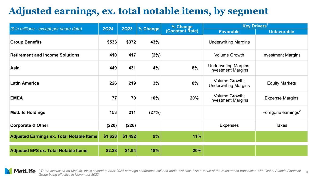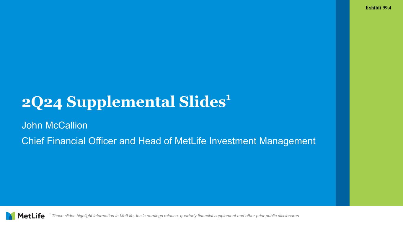 2Q24 Supplemental Slides1 John McCallion Chief Financial Officer and Head of MetLife Investment Management Exhibit 99.4 1 These slides highlight information in MetLife, Inc.'s earnings release, quarterly financial supplement and other prior public disclosures.