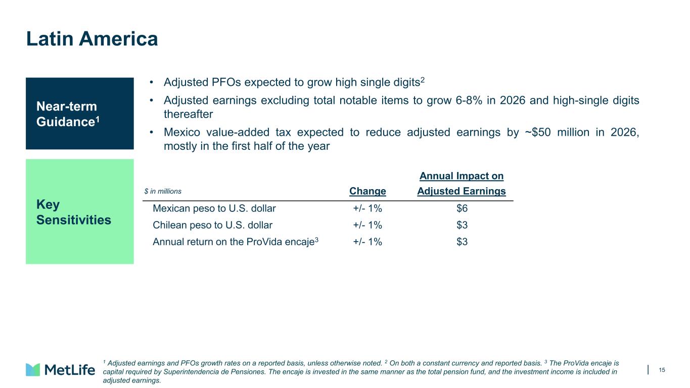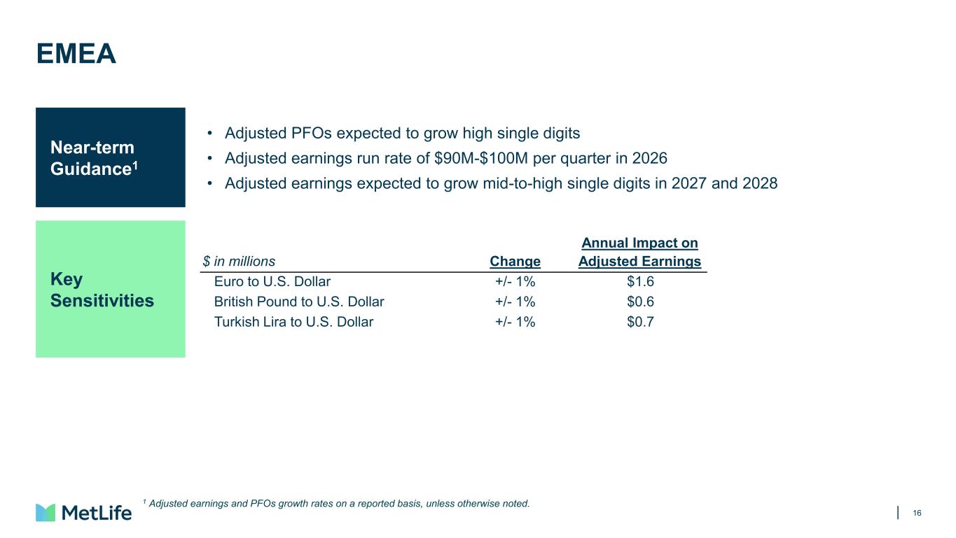 1515 Latin America • Adjusted PFOs expected to grow high single digits2 • Adjusted earnings excluding total notable items to grow 6-8% in 2026 and high-single digits thereafter • Mexico value-added tax expected to reduce adjusted earnings by ~$50 million in 2026, mostly in the first half of the year Near-term Guidance1 Key Sensitivities Annual Impact on $ in millions Change Adjusted Earnings Mexican peso to U.S. dollar +/- 1% $6 Chilean peso to U.S. dollar +/- 1% $3 Annual return on the ProVida encaje3 +/- 1% $3 1 Adjusted earnings and PFOs growth rates on a reported basis, unless otherwise noted. 2 On both a constant currency and reported basis. 3 The ProVida encaje is capital required by Superintendencia de Pensiones. The encaje is invested in the same manner as the total pension fund, and the investment income is included in adjusted earnings.