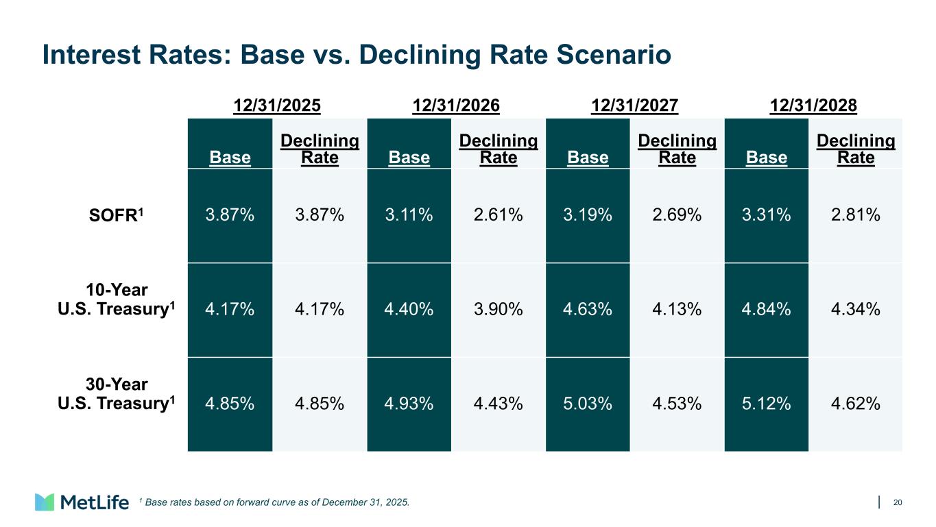 201 Base rates based on forward curve as of December 31, 2025. Interest Rates: Base vs. Declining Rate Scenario 12/31/2025 12/31/2026 12/31/2027 12/31/2028 Base Declining Rate Base Declining Rate Base Declining Rate Base Declining Rate SOFR1 3.87% 3.87% 3.11% 2.61% 3.19% 2.69% 3.31% 2.81% 10-Year U.S. Treasury1 4.17% 4.17% 4.40% 3.90% 4.63% 4.13% 4.84% 4.34% 30-Year U.S. Treasury1 4.85% 4.85% 4.93% 4.43% 5.03% 4.53% 5.12% 4.62%