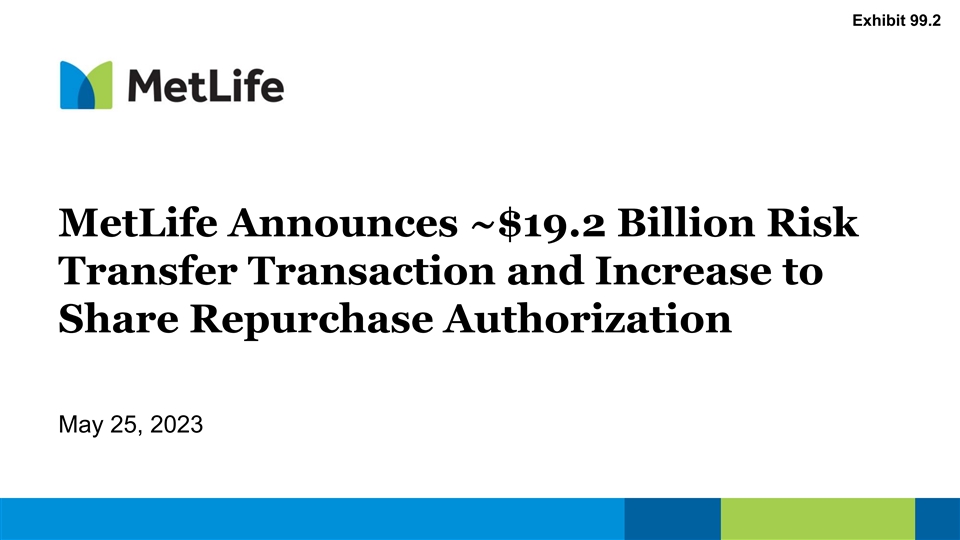 Exhibit 99.2 MetLife Announces ~$19.2 Billion Risk Transfer Transaction and Increase to Share Repurchase Authorization May 25, 2023