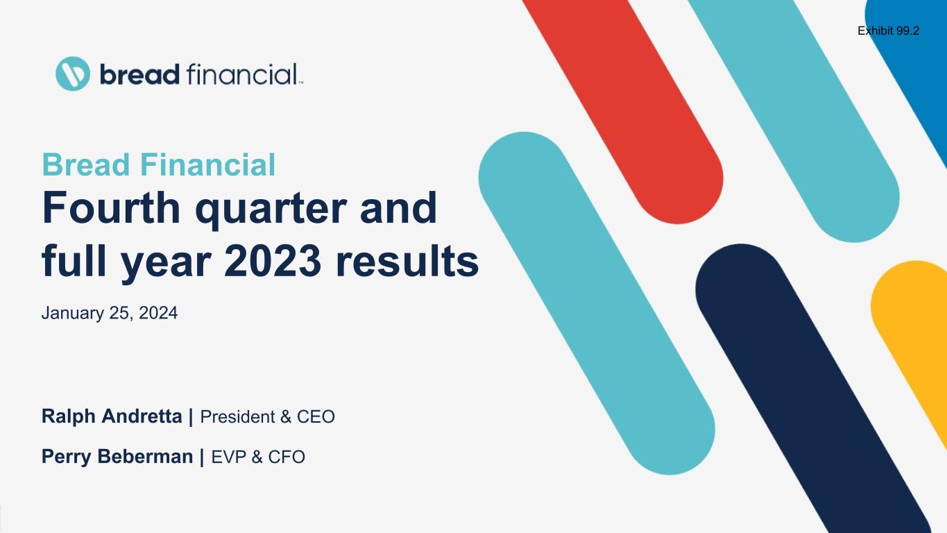 Bread Financial Fourth quarter and full year 2023 results January 25, 2024 © 2 0 2 2 B r e a d F i n a n c i a l | C o n f i d e n t i a l & P r o p r i e t a r y 1 Ralph Andretta | President & CEO Perry Beberman | EVP & CFO Exhibit 99.2