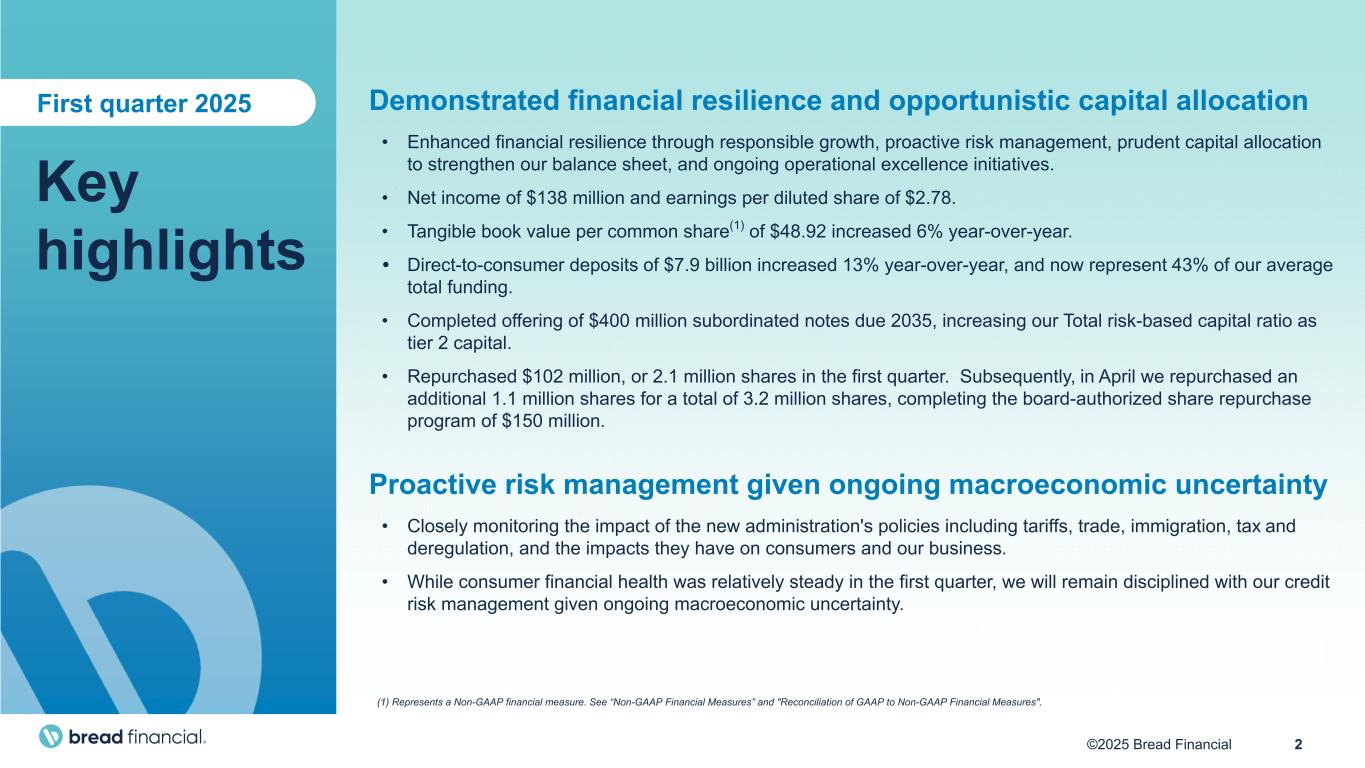 First quarter 2025 results © 2 0 2 2 B r e a d F i n a n c i a l | C o n f i d e n t i a l & P r o p r i e t a r y 1 April 24, 2025 Exhibit 99.2