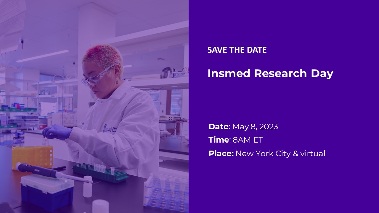 SAVE THE DATE  Insmed Research Day  Date: May 8, 2023  Place: New York City & virtual  Time: 8AM ET