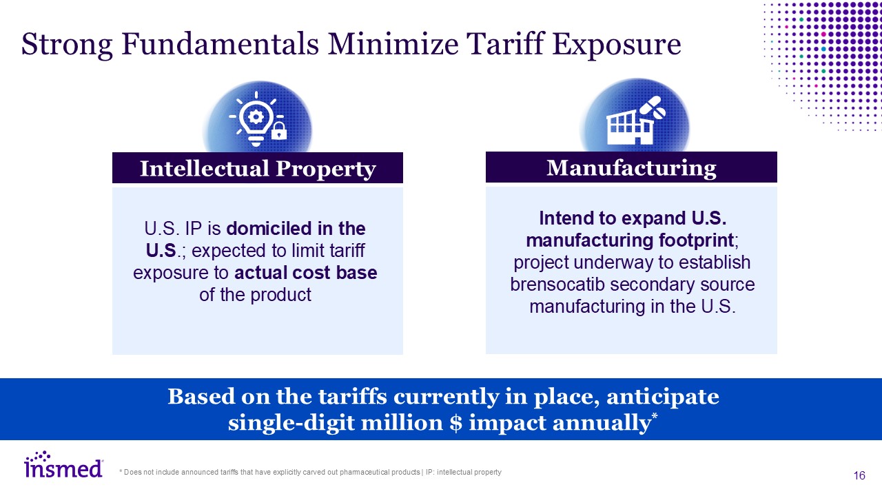 Strong Fundamentals Minimize Tariff Exposure  * Does not include announced tariffs that have explicitly carved out pharmaceutical products | IP: intellectual property  Based on the tariffs currently in place, anticipate single-digit million $ impact annually*  U.S. IP is domiciled in the U.S.; expected to limit tariff exposure to actual cost base of the product  Intellectual Property  Intend to expand U.S. manufacturing footprint; project underway to establish brensocatib secondary source manufacturing in the U.S.  Manufacturing