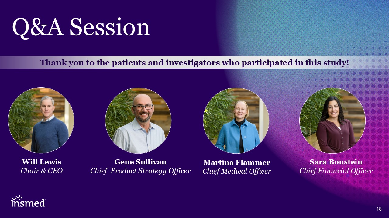 Q&A Session  Will Lewis  Chair & CEO  Sara Bonstein  Chief Financial Officer  Martina Flammer  Chief Medical Officer  Gene Sullivan  Chief Product Strategy Officer  Thank you to the patients and investigators who participated in this study!