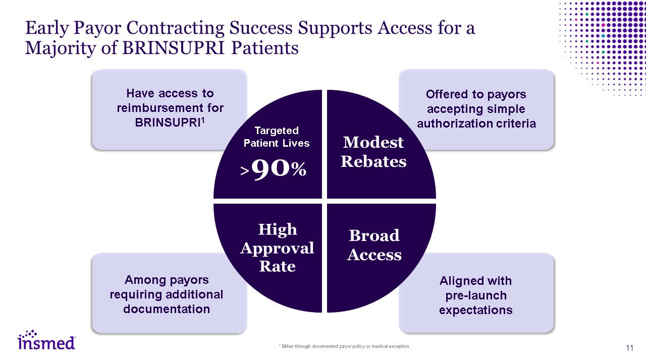 Early Payor Contracting Success Supports Access for a Majority of BRINSUPRI Patients  Aligned with   pre-launch expectations  Among payors requiring additional documentation  Offered to payors accepting simple authorization criteria  Have access to reimbursement for BRINSUPRI1  >90%  Targeted Patient Lives  Modest Rebates  High   Approval  Rate  Broad Access  1 Either through documented payor policy or medical exception