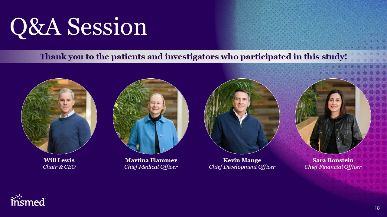 Q&A Session  Will Lewis  Chair & CEO  Sara Bonstein  Chief Financial Officer  Kevin Mange  Chief Development Officer  Martina Flammer  Chief Medical Officer  Thank you to the patients and investigators who participated in this study!