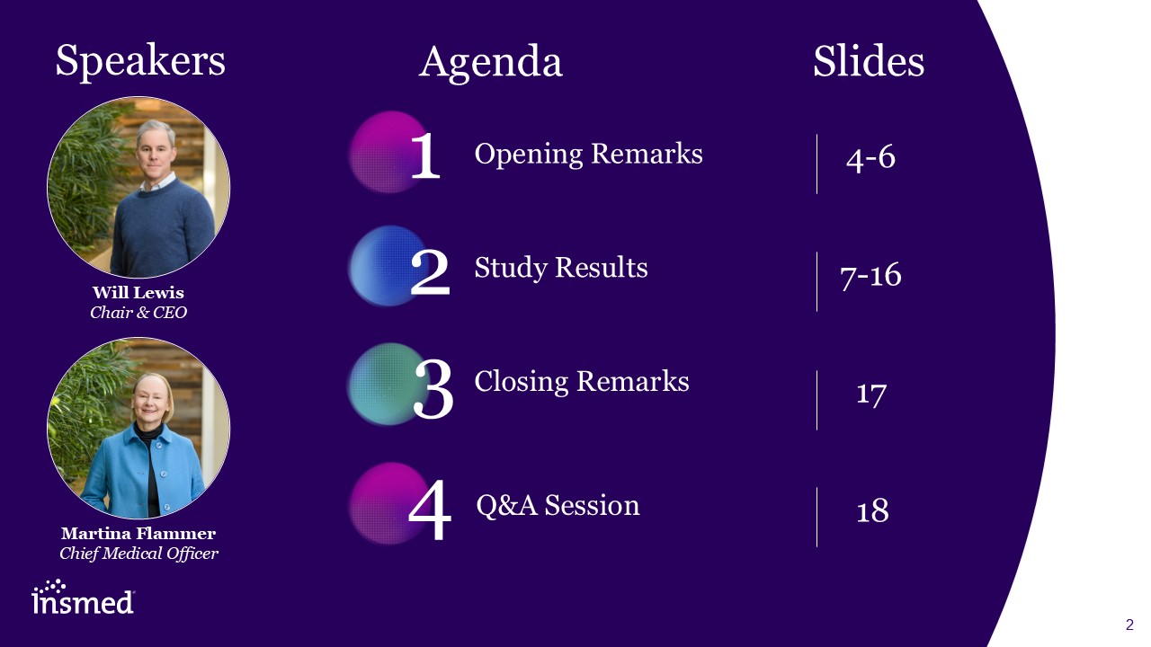 Opening Remarks  Closing Remarks  Q&A Session  4-6  7-16  17  18  Will Lewis  Chair & CEO  Martina Flammer  Chief Medical Officer  Study Results