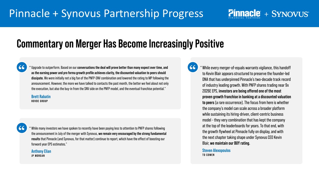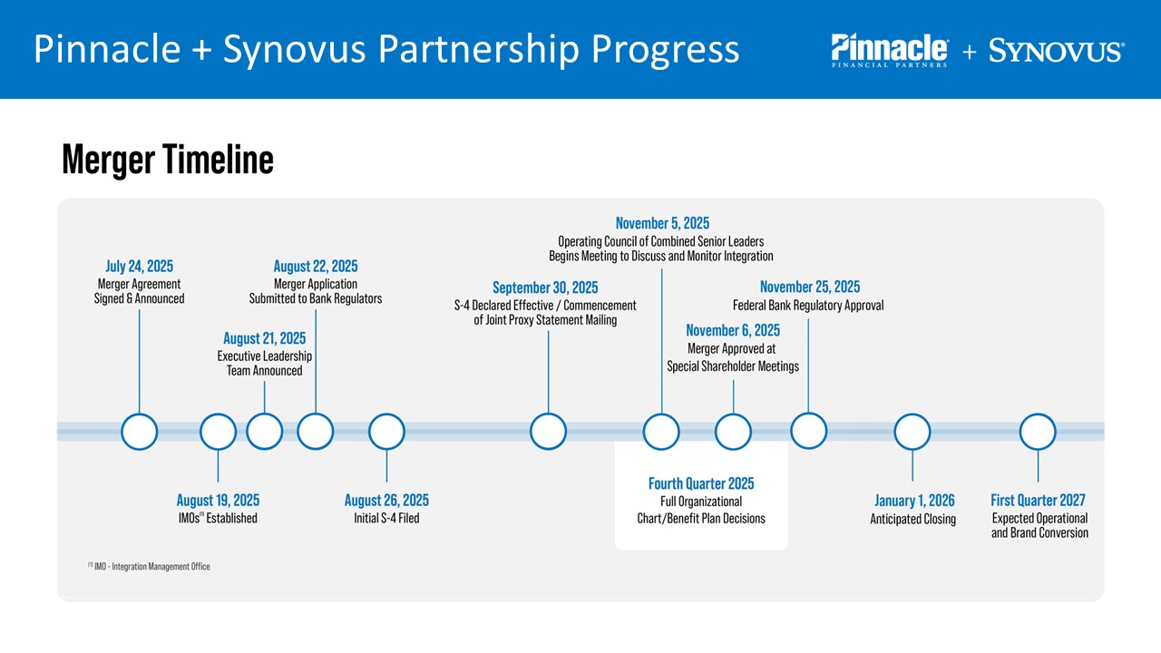 Pinnacle Financial Partners + Synovus Financial Corp.  Merger Update, November 2025