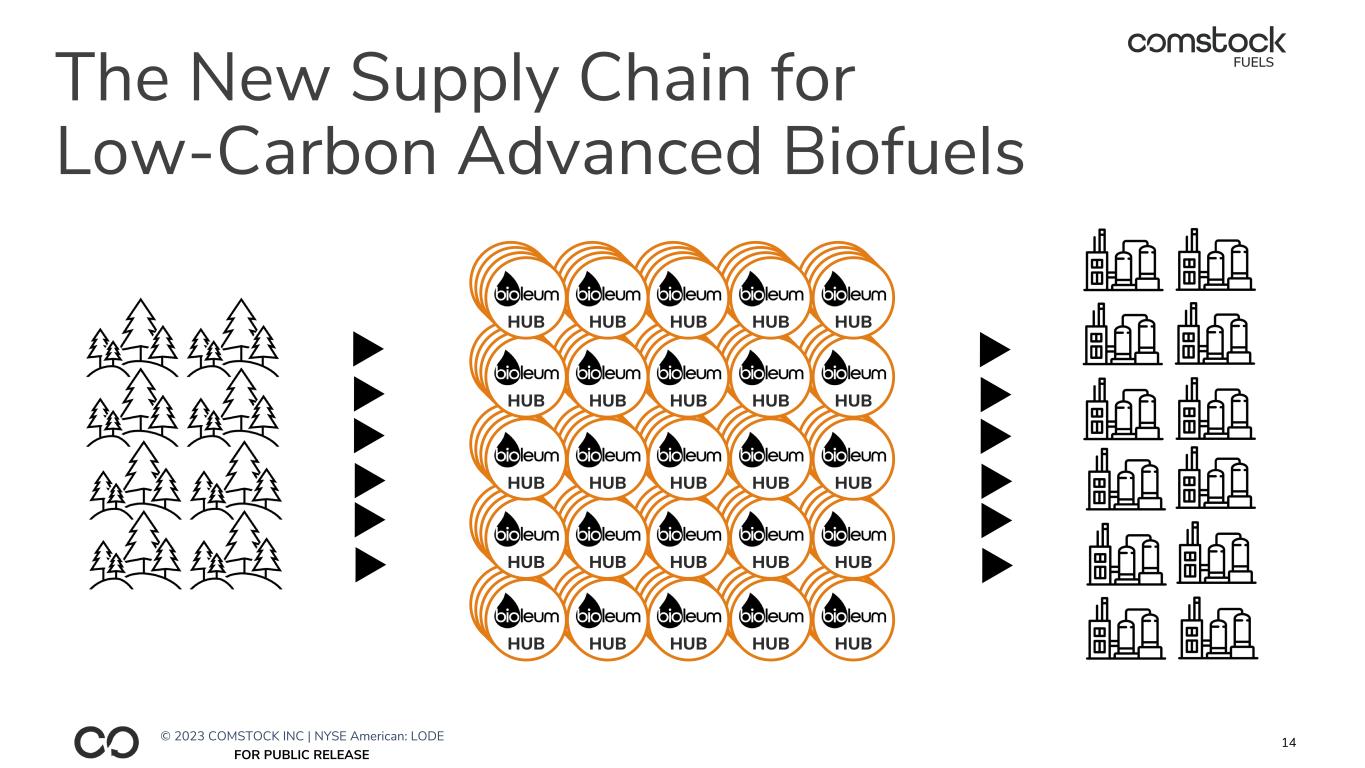13© 2023 COMSTOCK INC | NYSE American: LODE FOR PUBLIC RELEASE The New Supply Chain for Low-Carbon Advanced Biofuels HUB Forest Products Waste Advanced Biofuels Production