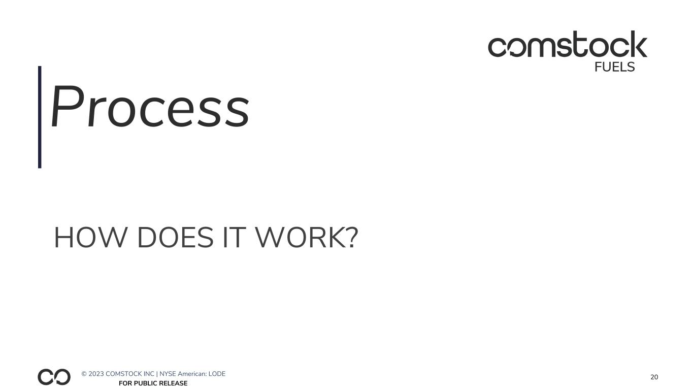 20© 2023 COMSTOCK INC | NYSE American: LODE FOR PUBLIC RELEASE Process HOW DOES IT WORK?