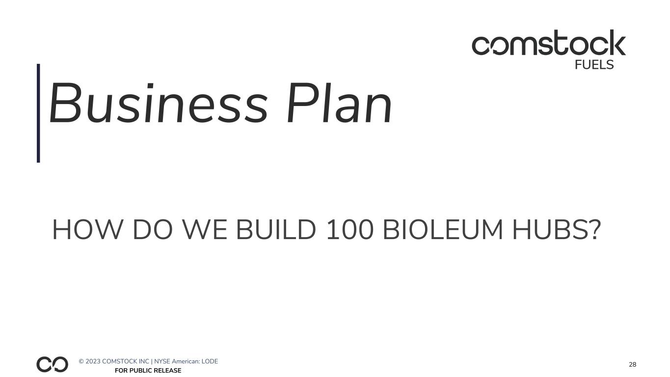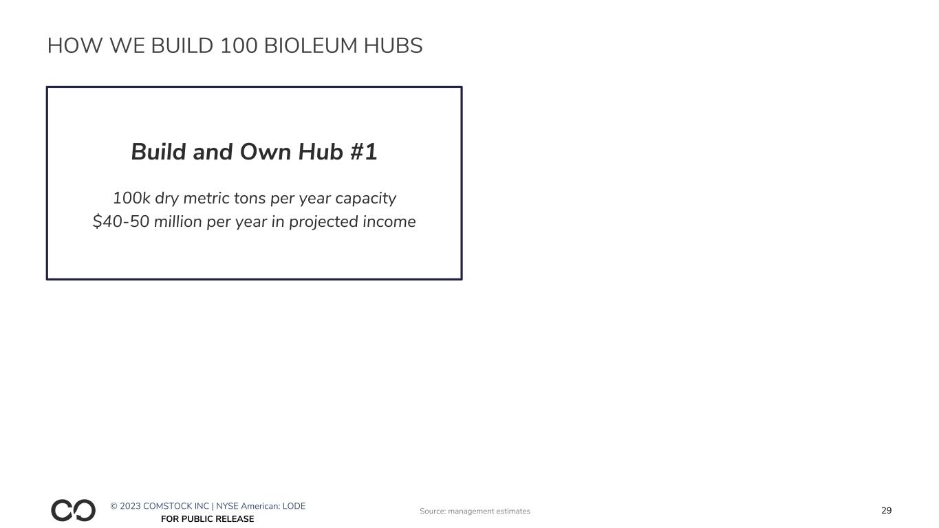 28© 2023 COMSTOCK INC | NYSE American: LODE FOR PUBLIC RELEASE Business Plan HOW DO WE BUILD 100 BIOLEUM HUBS?
