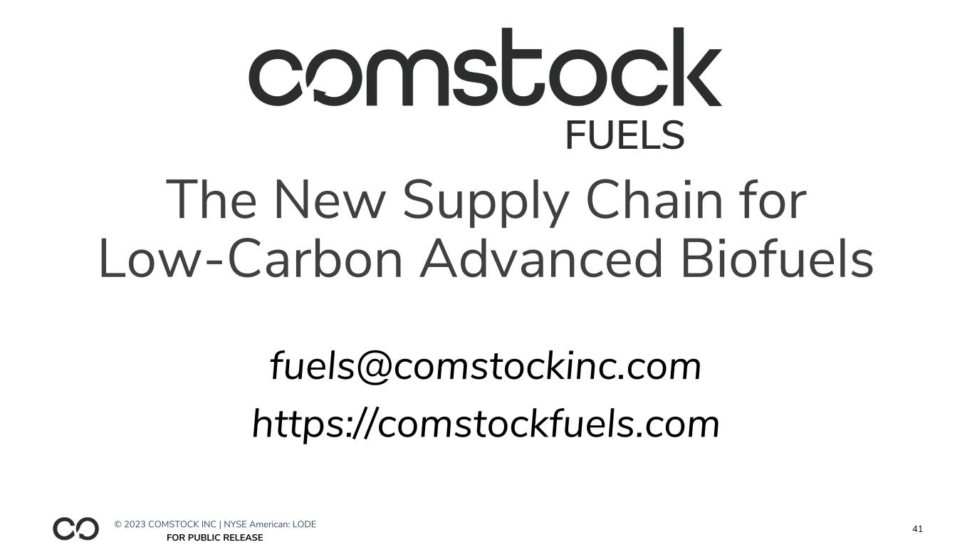 41© 2023 COMSTOCK INC | NYSE American: LODE FOR PUBLIC RELEASE The New Supply Chain for Low-Carbon Advanced Biofuels fuels@comstockinc.com https://comstockfuels.com
