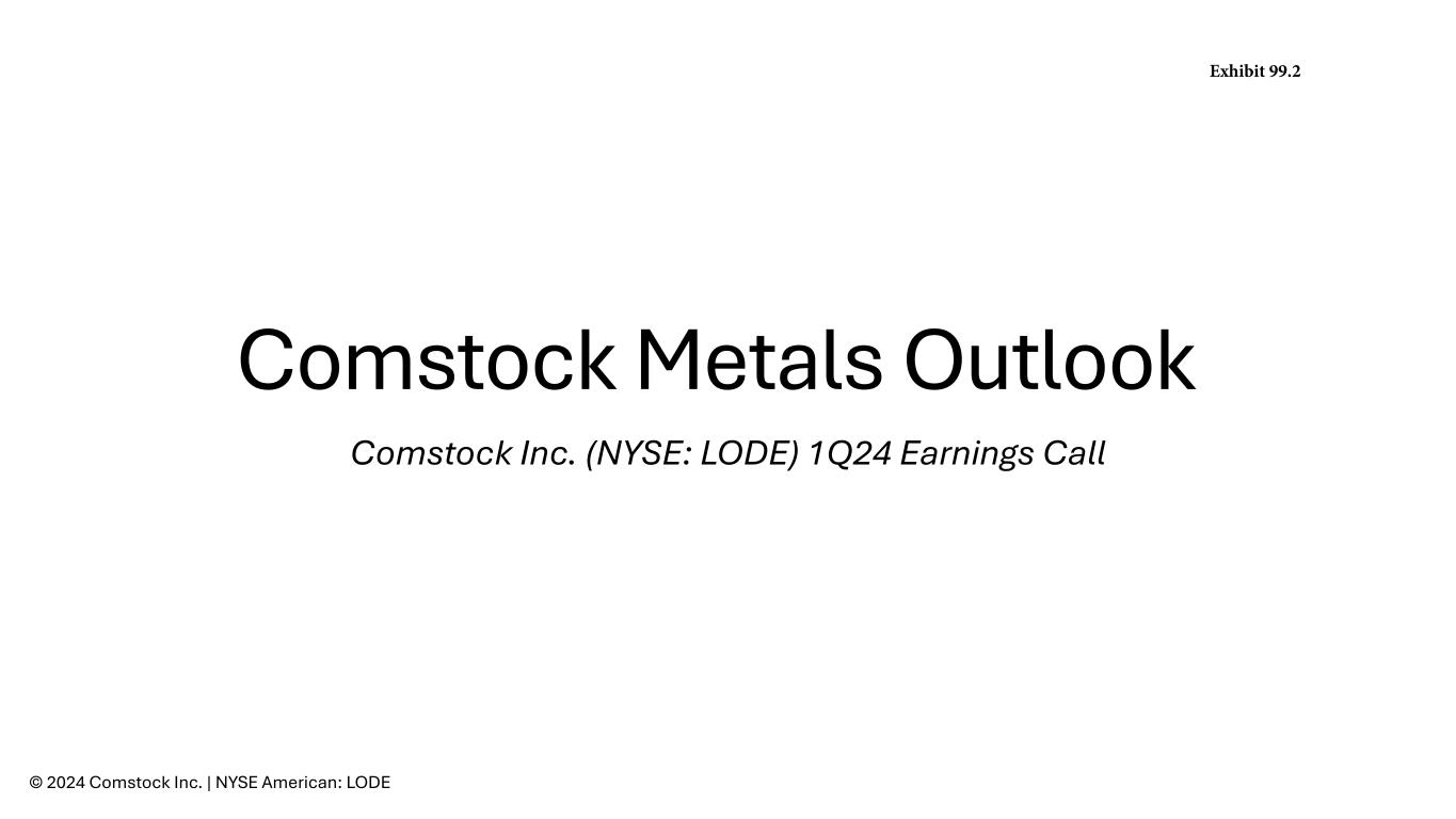 Comstock Metals Outlook Comstock Inc. (NYSE: LODE) 1Q24 Earnings Call © 2024 Comstock Inc. | NYSE American: LODE Exhibit 99.2