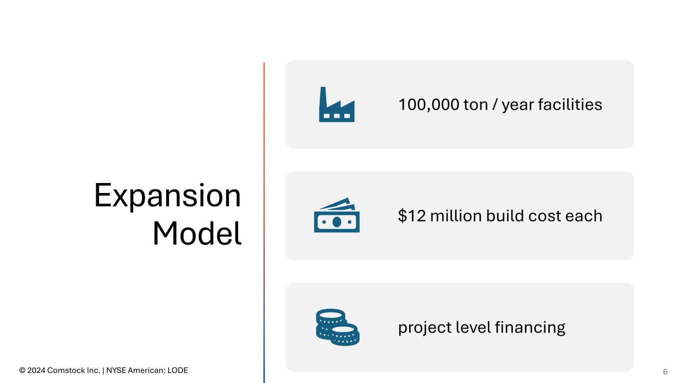 Expansion Model 100,000 ton / year facilities $12 million build cost each project level financing © 2024 Comstock Inc. | NYSE American: LODE 6