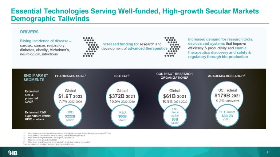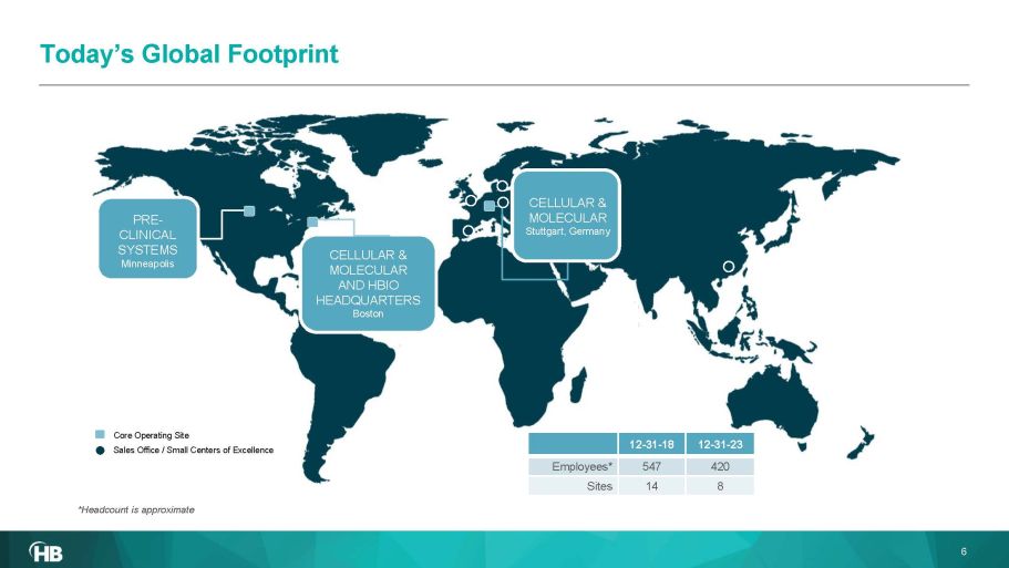 Today’s Global Footprint CELLULAR & MOLECULAR AND HBIO HEADQUARTERS Boston PRE - CLINICAL SYSTEMS Minneapolis Sales Office / Small Centers of Excellence Core Operating Site 12 - 31 - 23 12 - 31 - 18 420 547 Employees* 8 14 Sites *Headcount is approximate CELLULAR & MOLECULAR Stuttgart, Germany 6