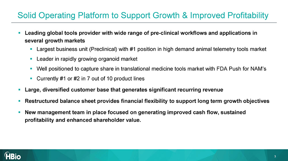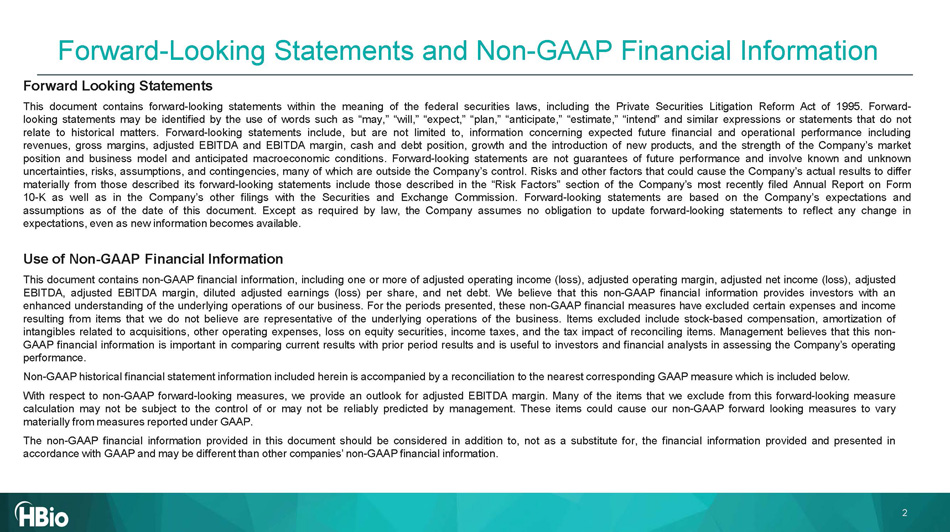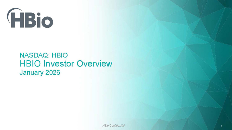 HBio Confidential 1 NASDAQ: HBIO HBIO Investor Overview January 202 6
