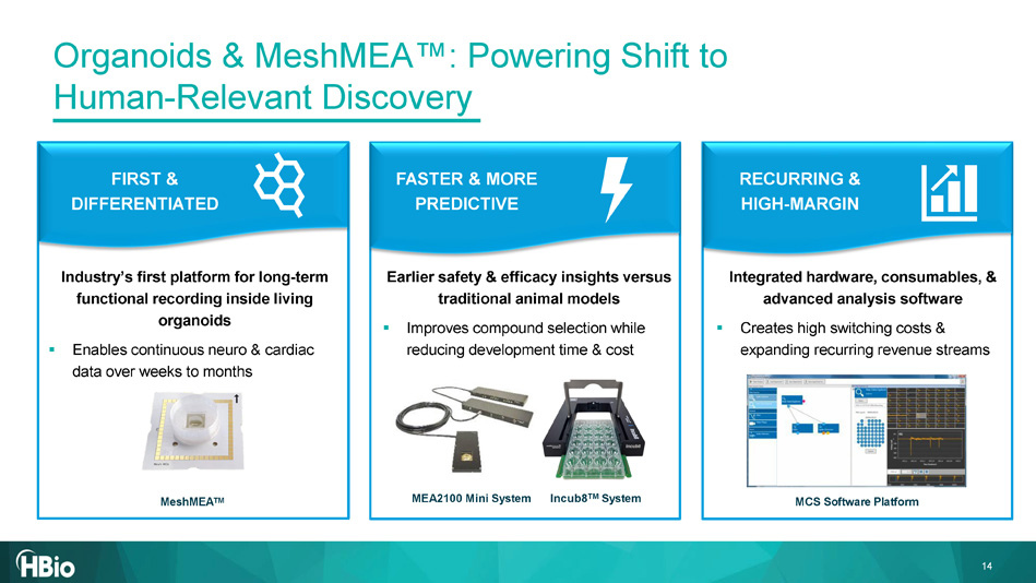 ▪ Leading provider of products across the drug development cycle, spanning research & discovery, bioproduction & preclinical testing ▪ Diversified offerings that span the gamut of preclinical workflows & applications ▪ Top - tier market positions across the majority of product lines 13 Research & Discovery Preclinical Safety & Toxicology CELLULAR TESTINGS COMPOUND CREATION CLINICAL SMALL MODEL SAFETY/TOXICOLOGY LARGE / NHP MODEL SAFETY/TOX ICOLOGY Bio - Production Regulatory Report Low Yield ORGANOIDS LARGE POPULATION Drug Discovery Life Cycle & Where We Fit In Preclinical Systems Products Cellular & Molecular Technology (CMT) Products Amino Acid Analyzers Broad Portfolio Serves as One Stop Shop for Customers