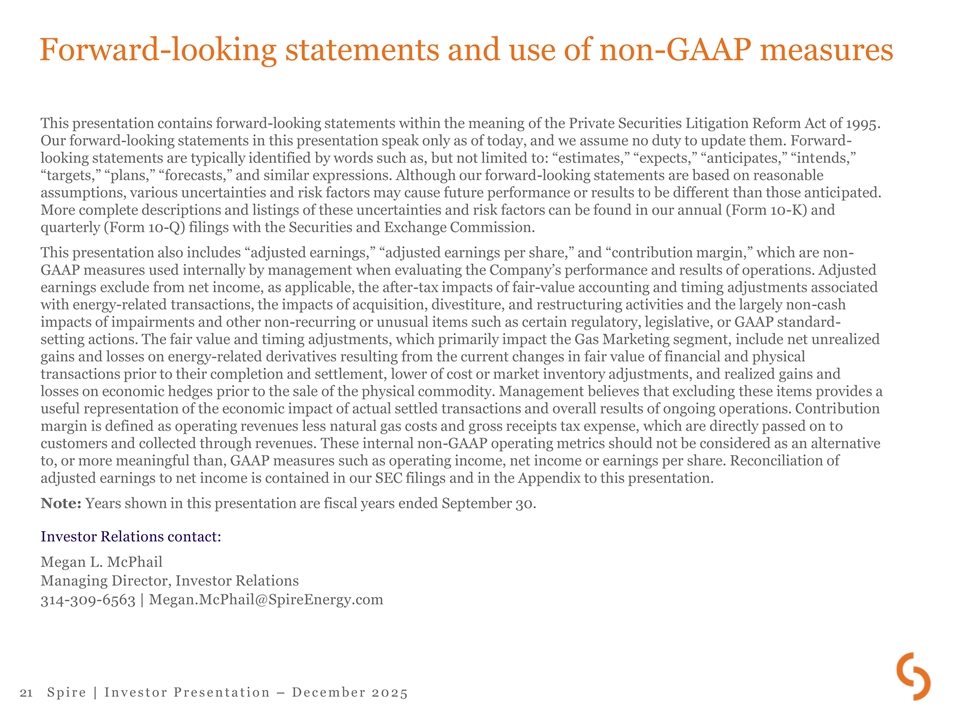 Appendix 20 S p i r e | I n v e s t o r P r e s e n t a t i o n – D e c e m b e r 2 0 2 5
