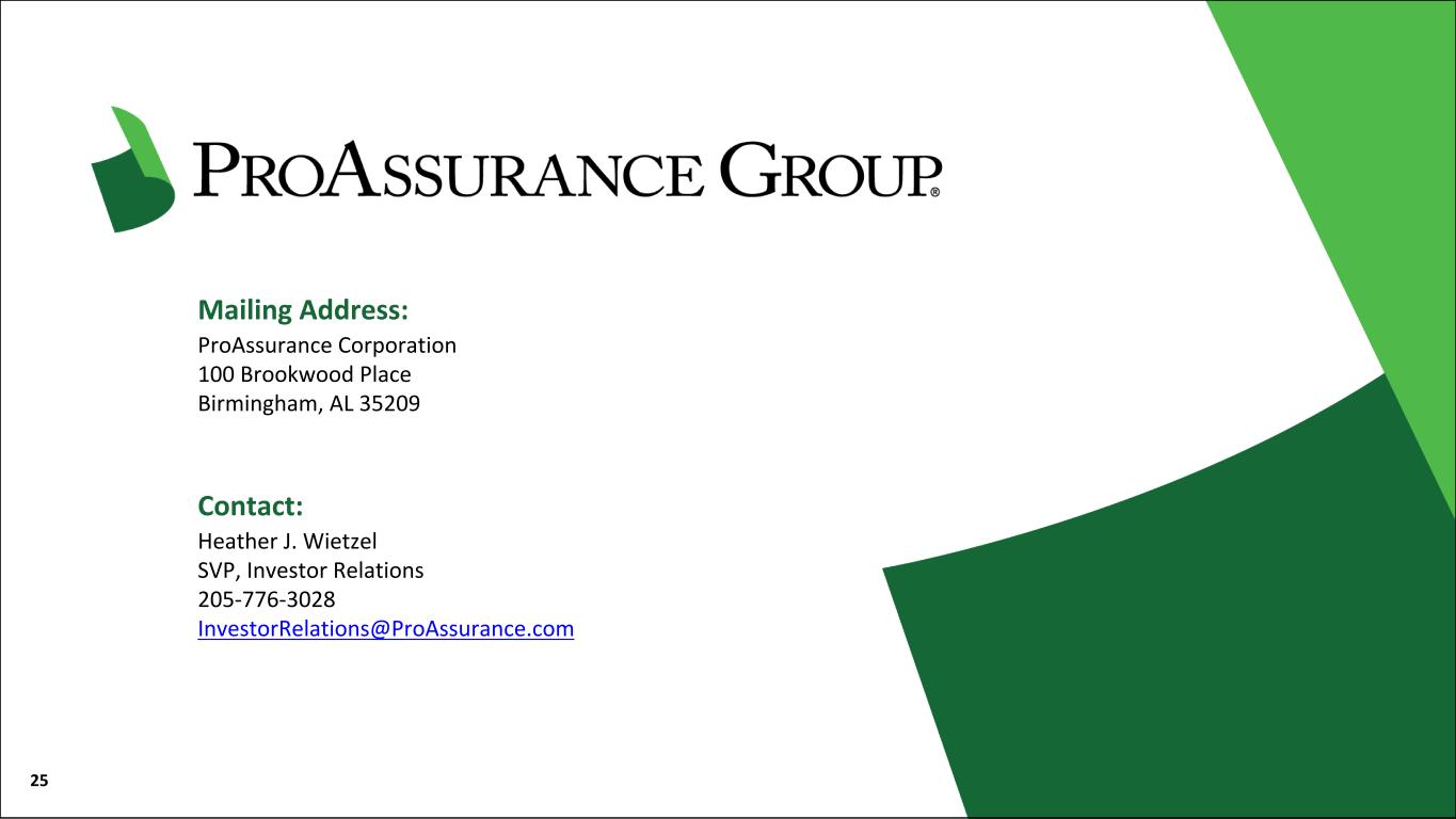 25 Contact: Heather J. Wietzel SVP, Investor Relations 205-776-3028 InvestorRelations@ProAssurance.com Mailing Address: ProAssurance Corporation 100 Brookwood Place Birmingham, AL 35209