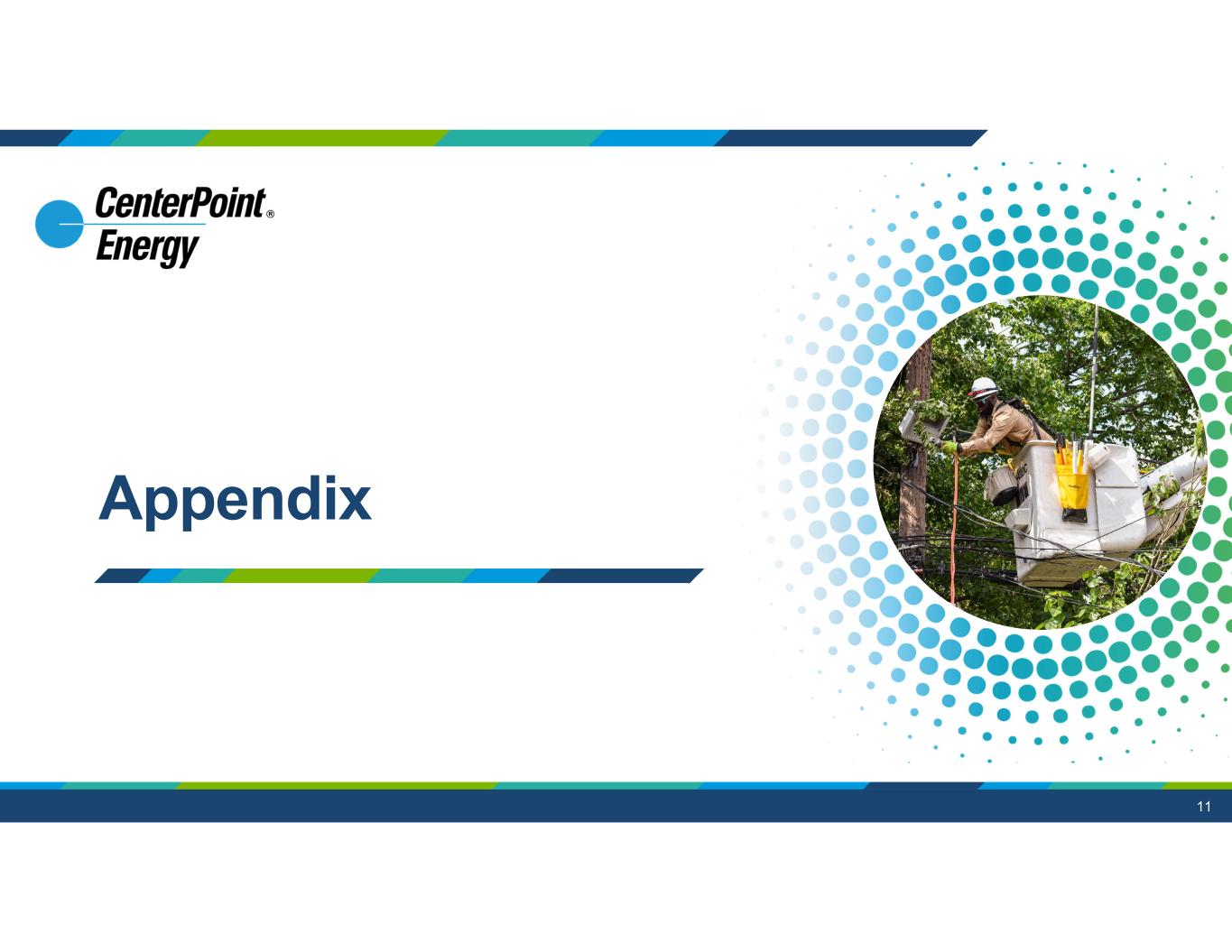 10 Contacts Jackie Richert Senior Vice President Corporate Planning, Investor Relations and Treasury Tel. (713) 207 – 9380 jackie.richert@centerpointenergy.com Ben Vallejo Director Investor Relations and Corporate Planning Tel. (713) 207 – 5461 ben.vallejo@centerpointenergy.com General Contact Tel. (713) 207 – 6500 https://investors.centerpointenergy.com/contact-us