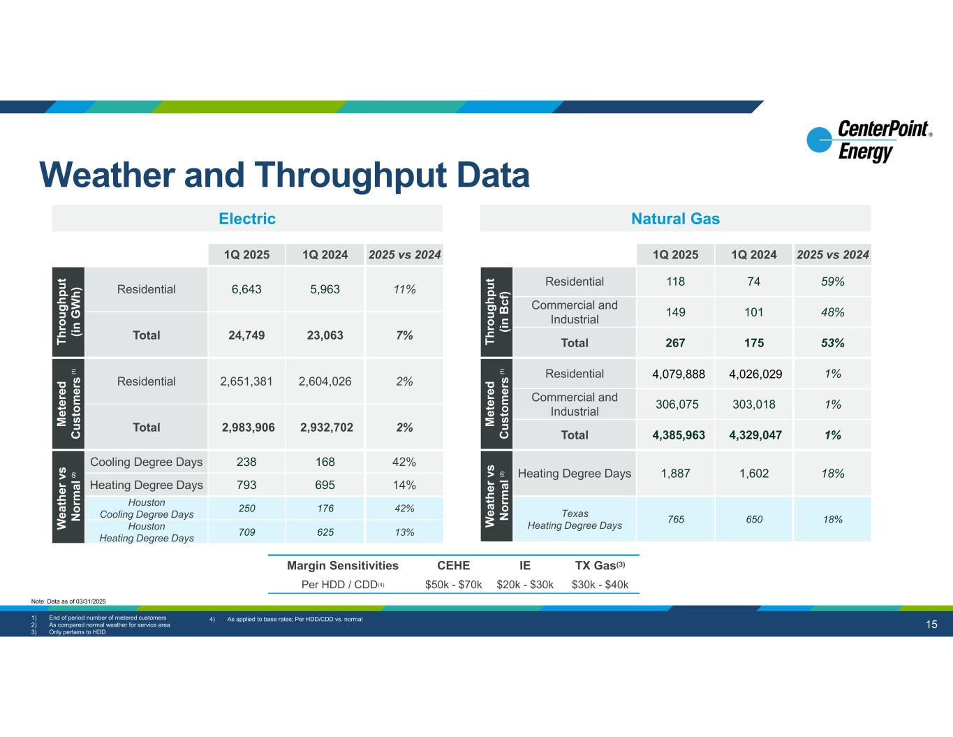 15 aaaaaaaaa Electric Natural Gas 2025 vs 20241Q 20241Q 2025 11%5,9636,643Residential Th ro ug hp ut (in G W h) 7%23,06324,749Total 2%2,604,0262,651,381Residential M et er ed C us to m er s (1 ) 2%2,932,702 2,983,906 Total 42%168238Cooling Degree Days W ea th er v s N or m al (2 ) 14%695793Heating Degree Days 42%176250Houston Cooling Degree Days 13%625709Houston Heating Degree Days 2025 vs 20241Q 20241Q 2025 59%74118Residential Th ro ug hp ut (in B cf ) 48%101149Commercial and Industrial 53%175267Total 1%4,026,029 4,079,888 Residential M et er ed C us to m er s (1 ) 1%303,018306,075 Commercial and Industrial 1%4,329,047 4,385,963 Total 18%1,6021,887Heating Degree Days W ea th er v s N or m al (2 ) 18%650765Texas Heating Degree Days TX Gas(3)IECEHEMargin Sensitivities $30k - $40k$20k - $30k$50k - $70k Per HDD / CDD(4) 1) End of period number of metered customers 2) As compared normal weather for service area 3) Only pertains to HDD 4) As applied to base rates; Per HDD/CDD vs. normal Note: Data as of 03/31/2025 Weather and Throughput Data