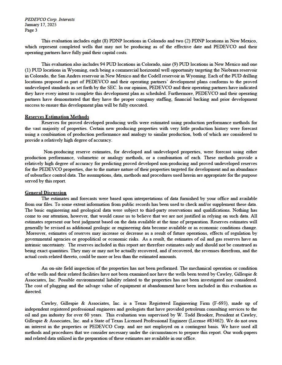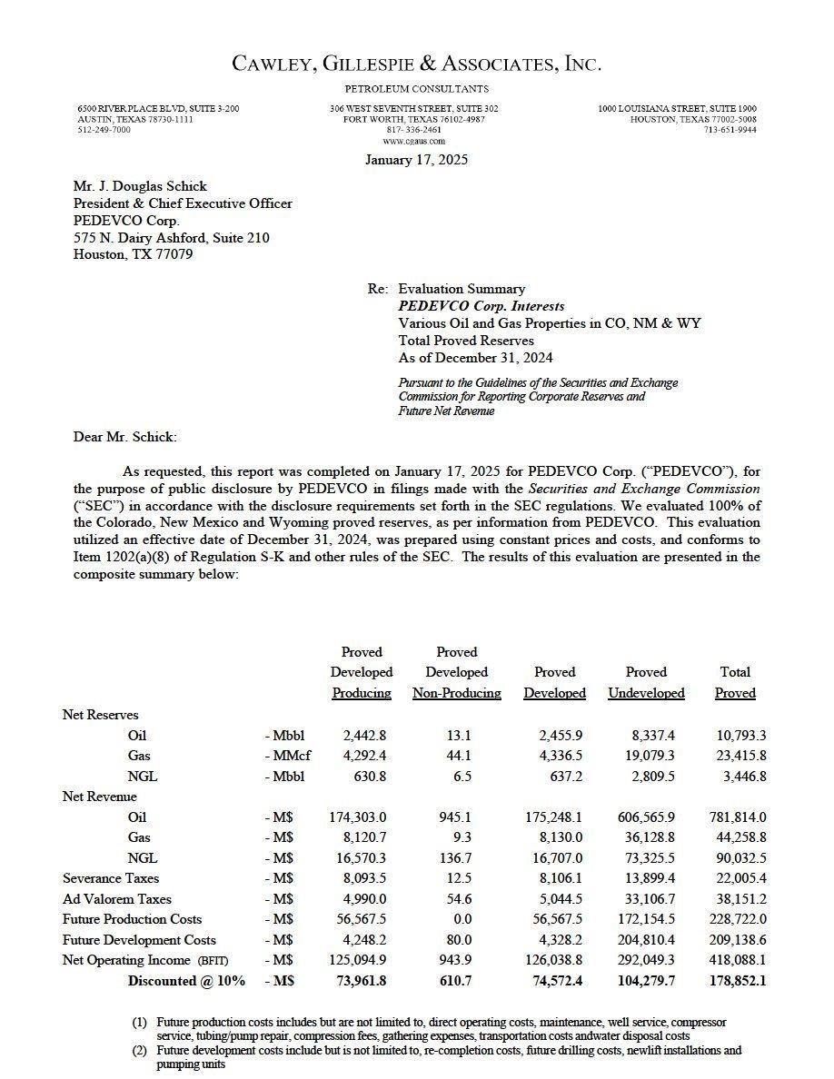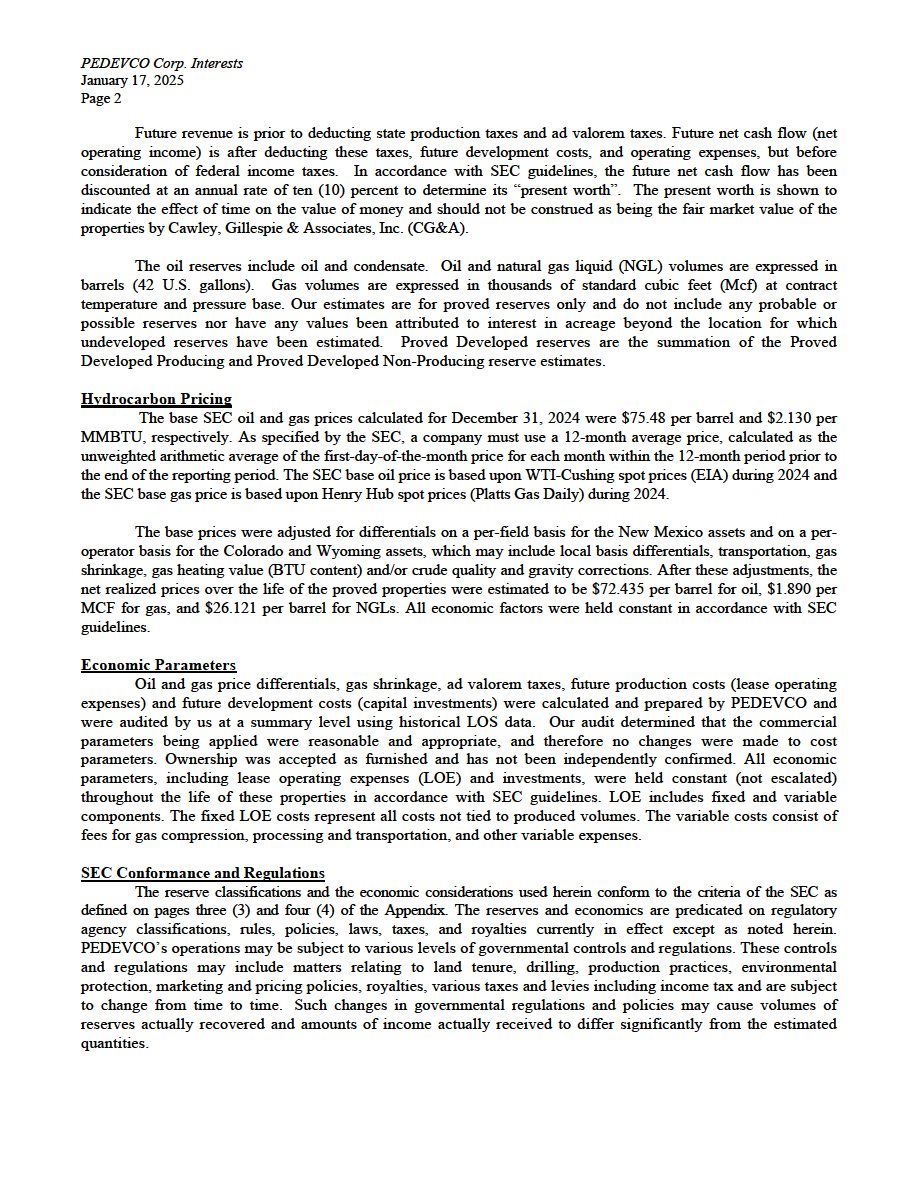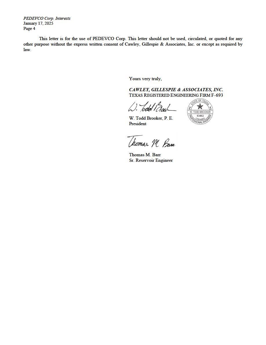 EX-99.2 4 ped_ex992.htm 2024 RESERVE REPORT PREPARED BY CAWLEY ped_ex992.htm