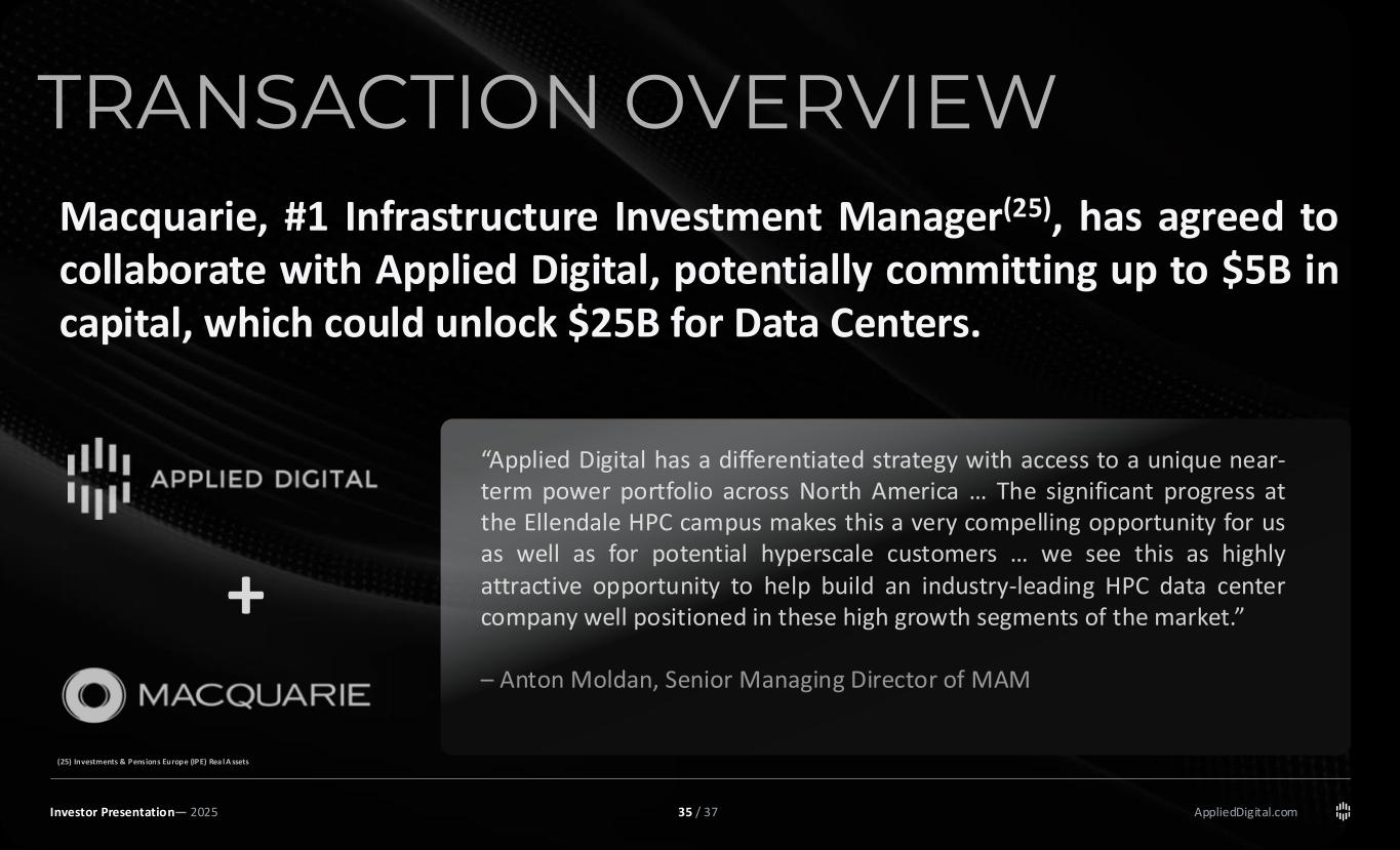 MACQUARIE TRANSACTION 06 AppliedDigital.comInvestor Presentation— 2025 34 / 37