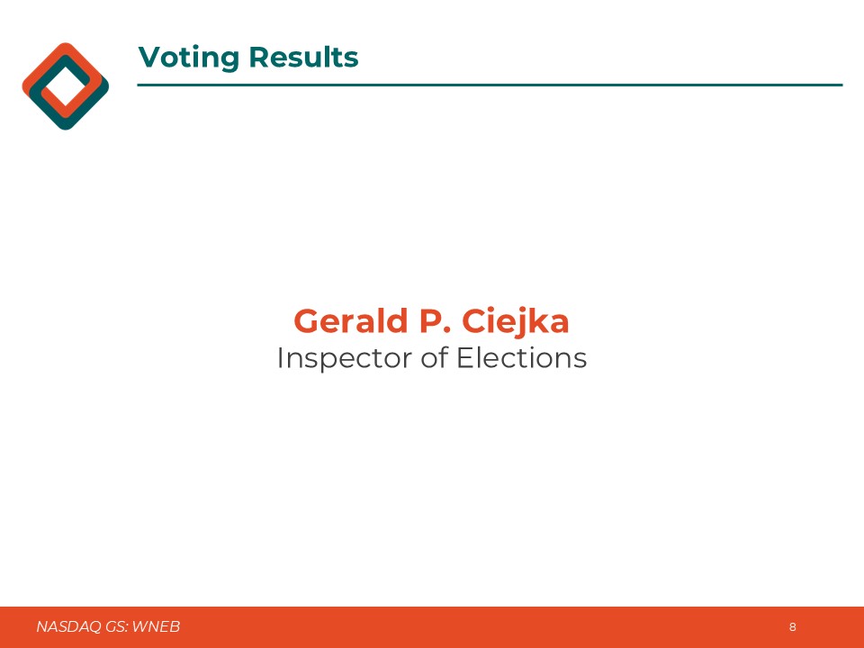 Voting Results Gerald P. Ciejka Inspector of Elections NASDAQ GS: WNEB NASDAQ GS: WNEB 8